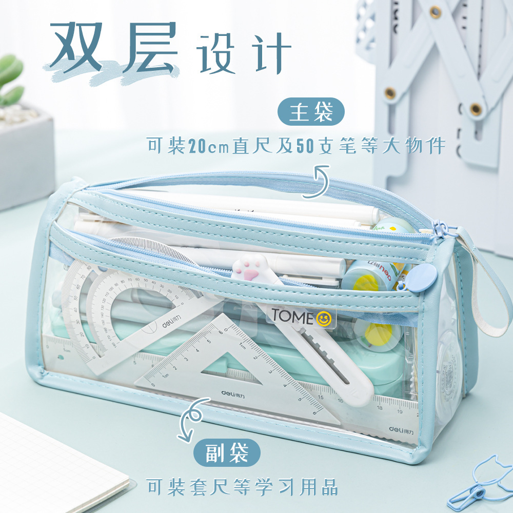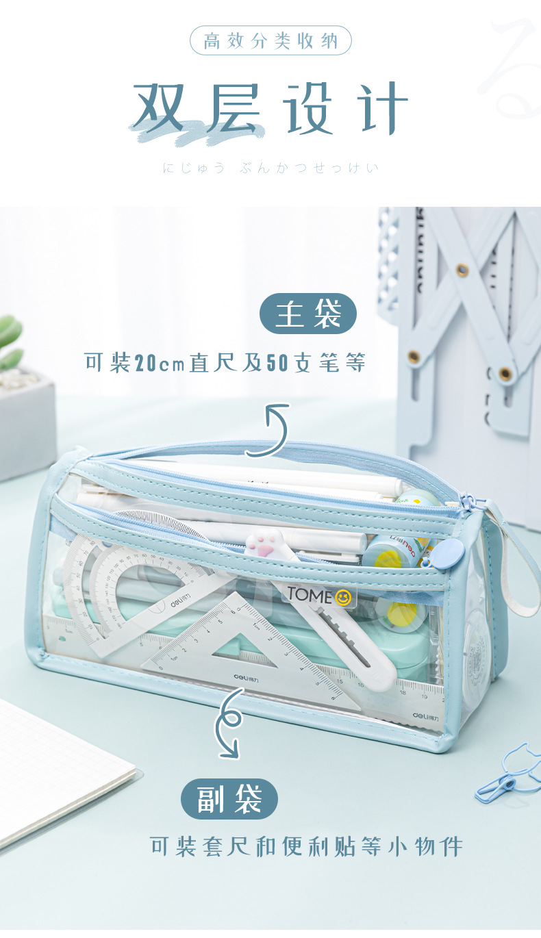 双层透明笔袋考试专用大容量中考高考文具袋高颜值笔袋文具袋批发