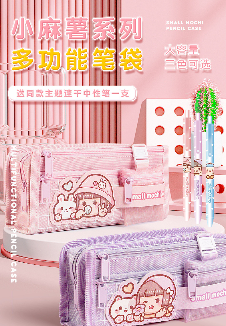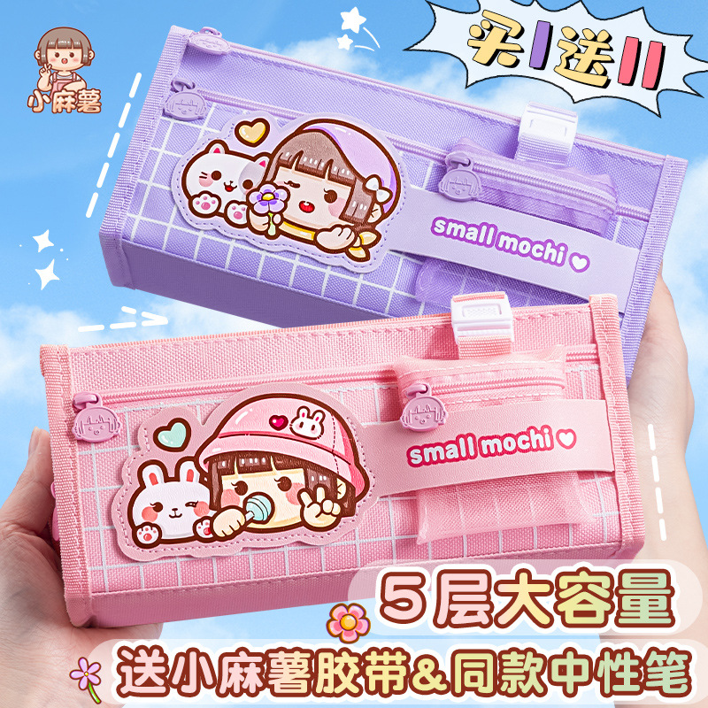 小麻薯笔袋新款大容量女孩多功能文具盒儿童铅笔盒收纳袋笔袋批发