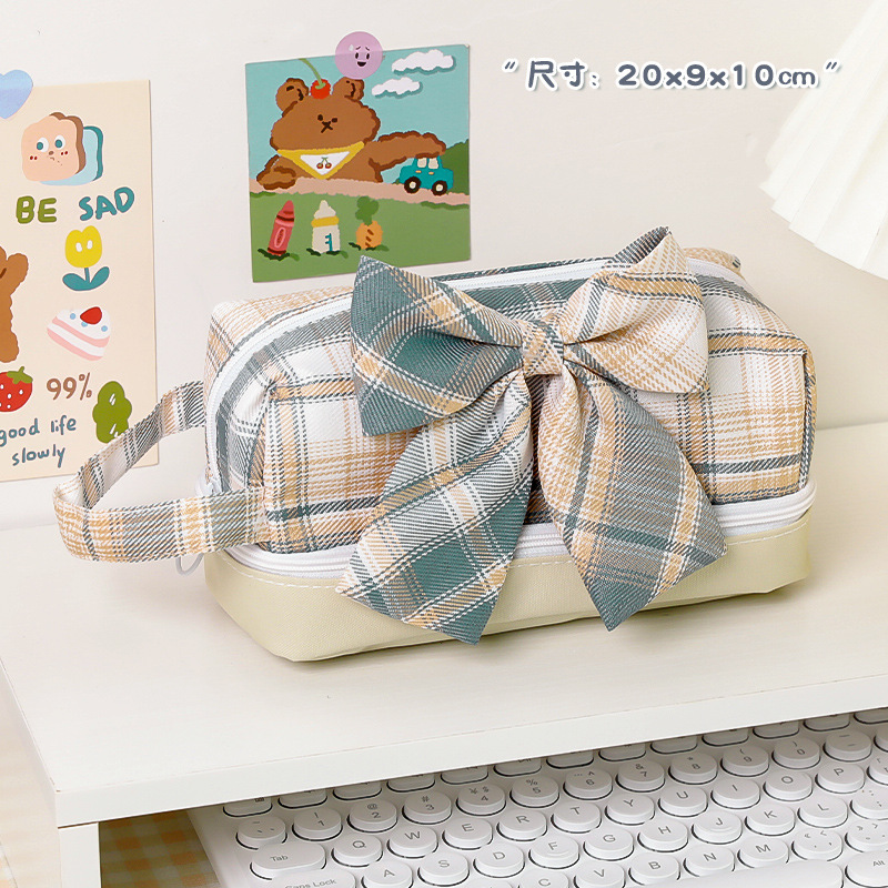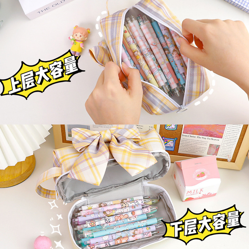 禄浩jk迷学院风大容量蝴蝶结笔袋 少女心学生文具盒袋多层收纳包
