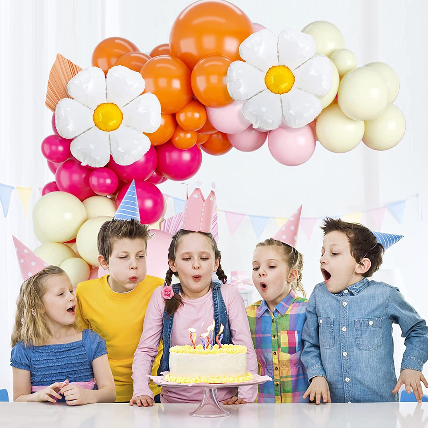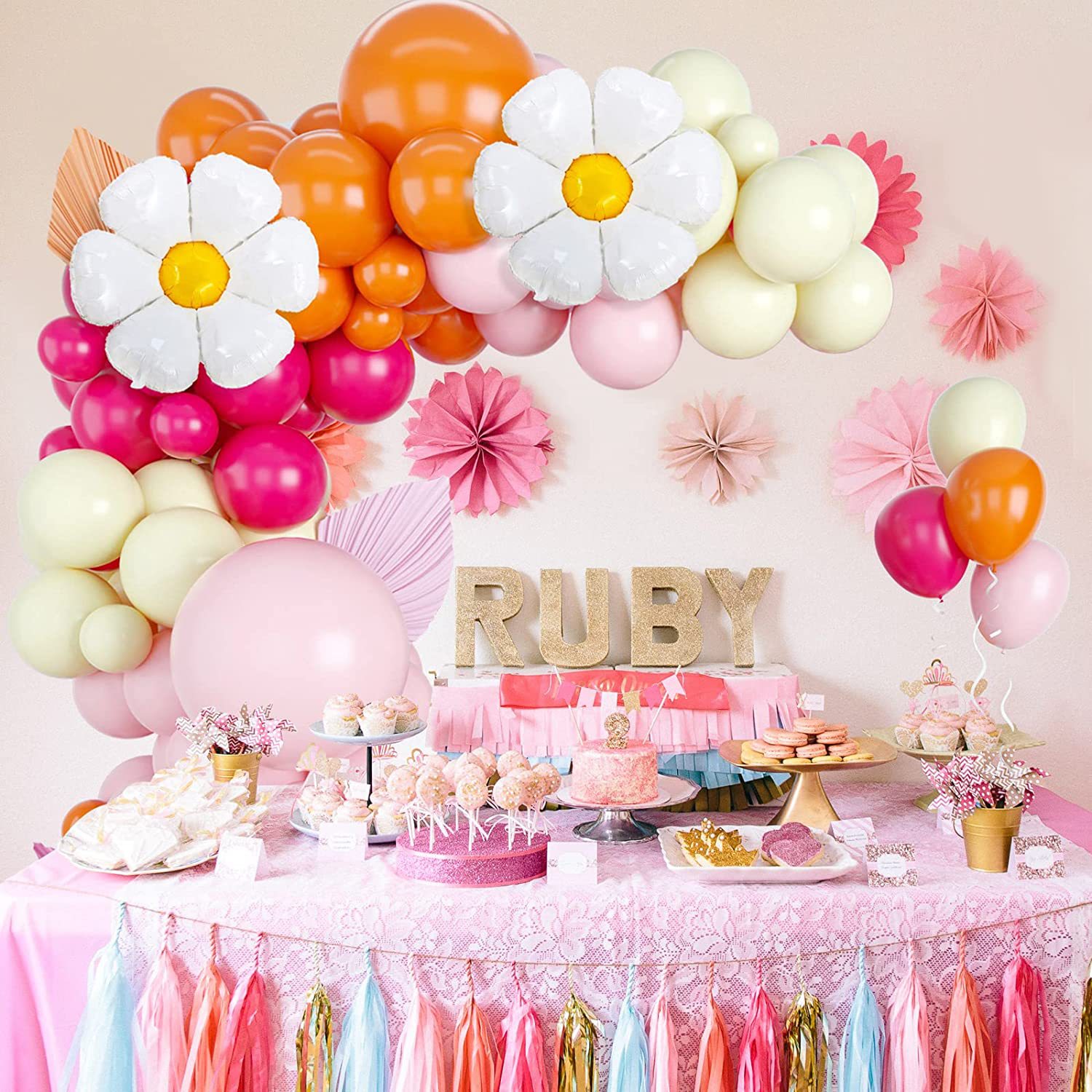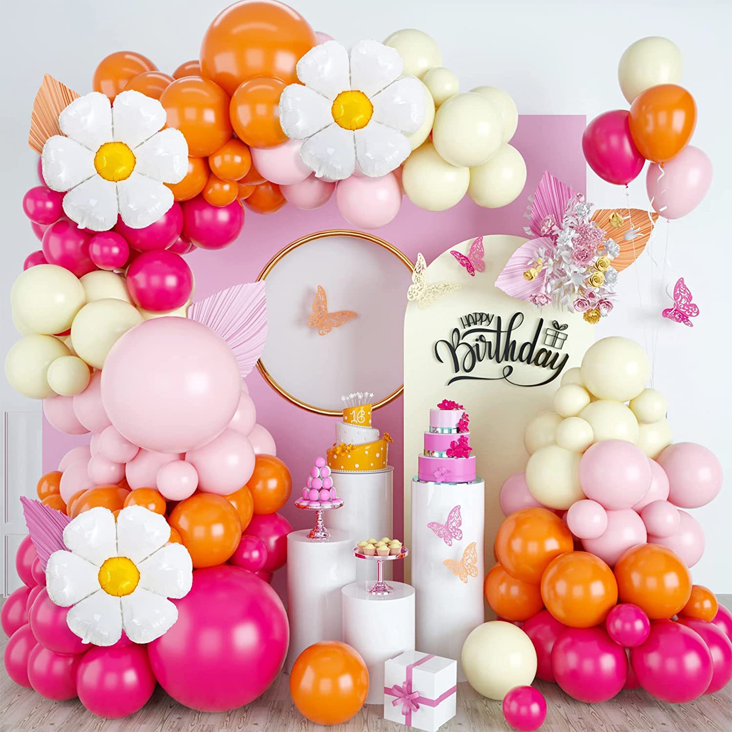 雏菊花气球链花环拱门套装粉色女孩乳胶气球生日婚礼纪念日装饰