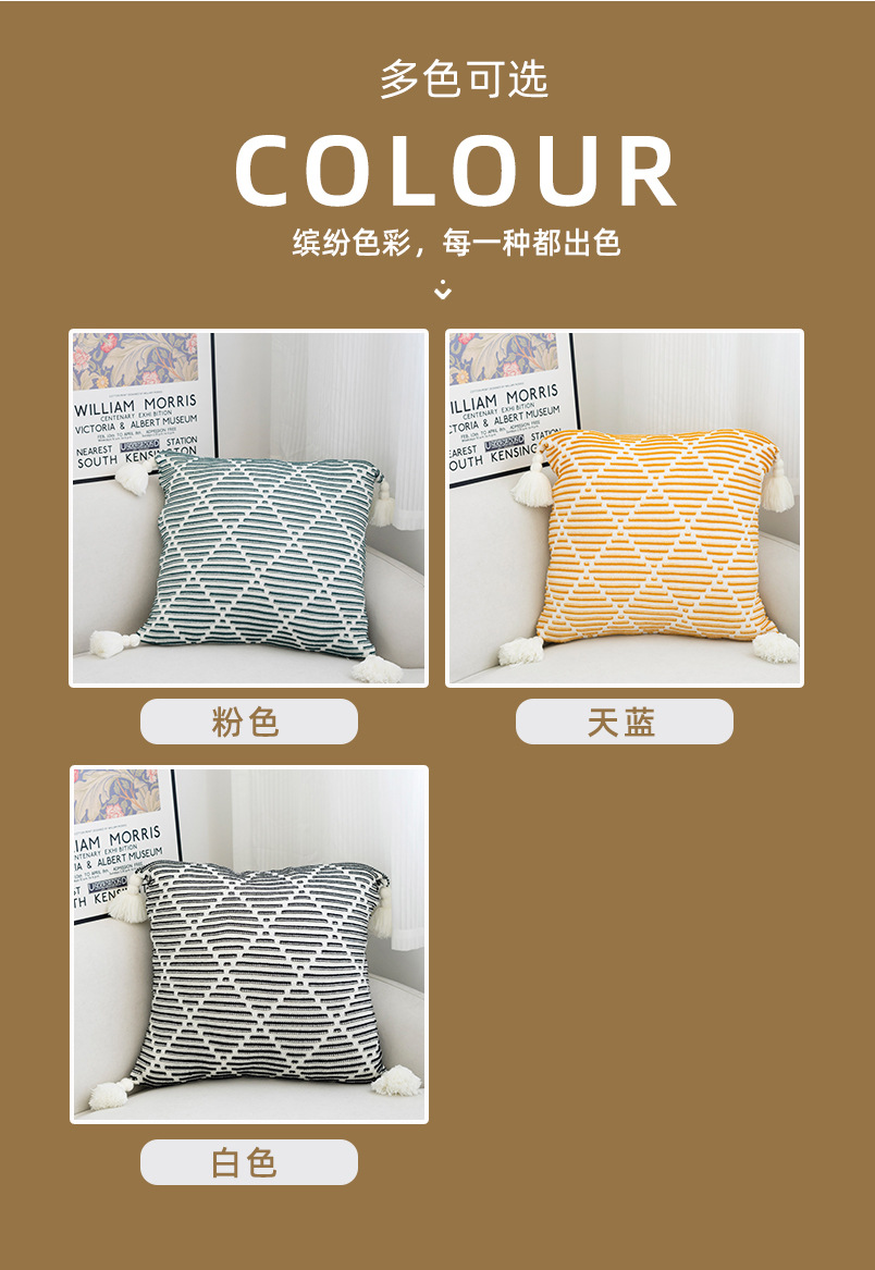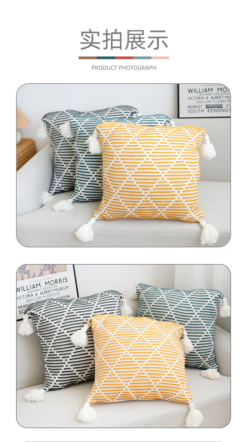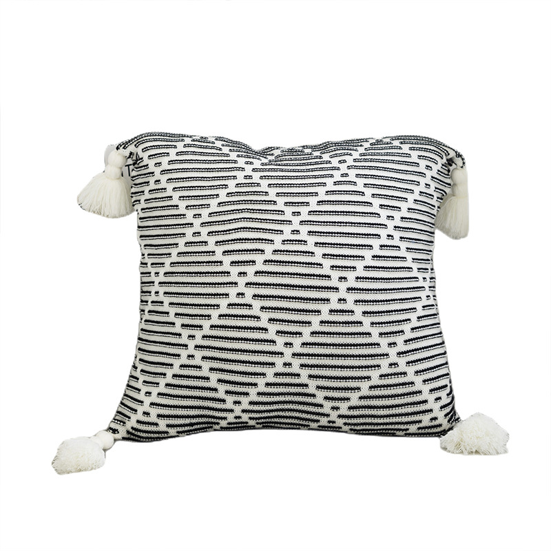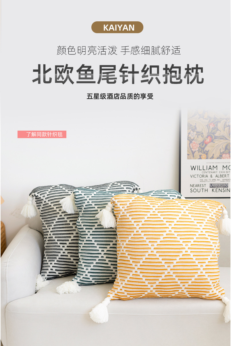 北欧风沙发抱枕靠垫床头方形鱼尾大吊穗针织抱枕套轻奢客厅靠枕