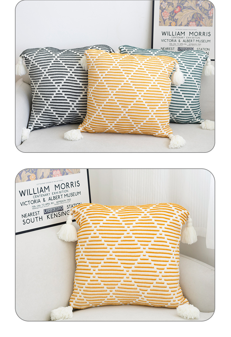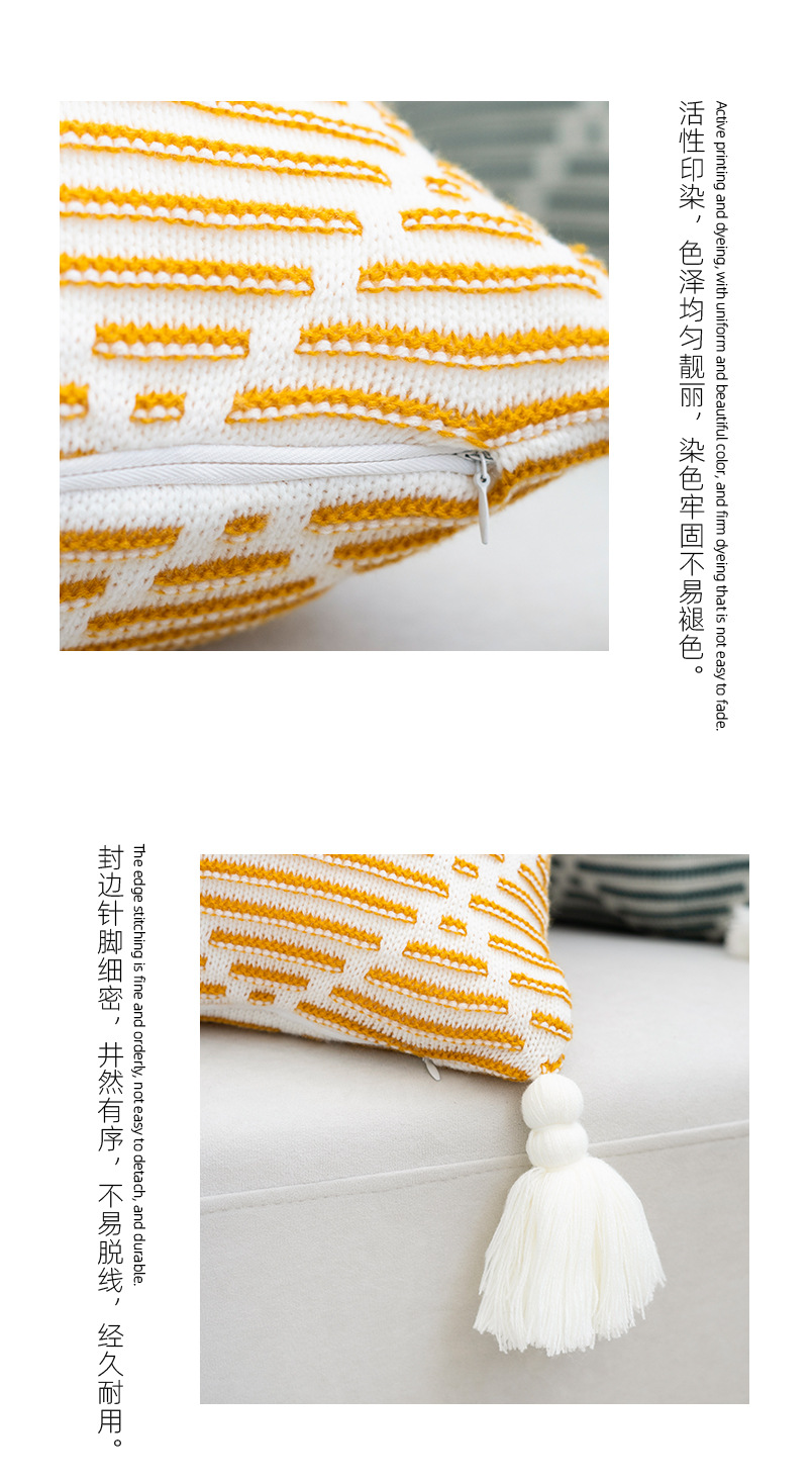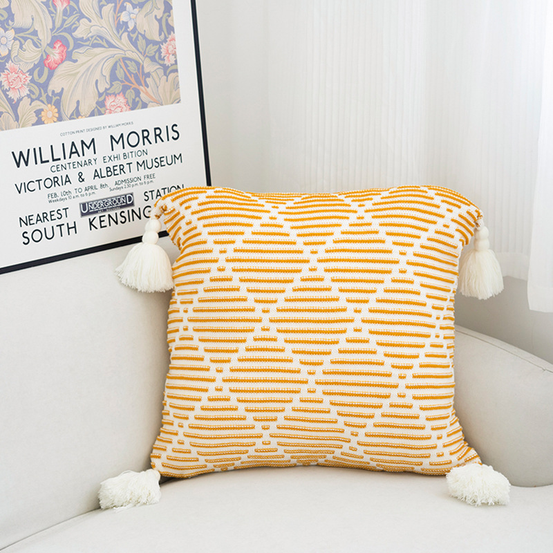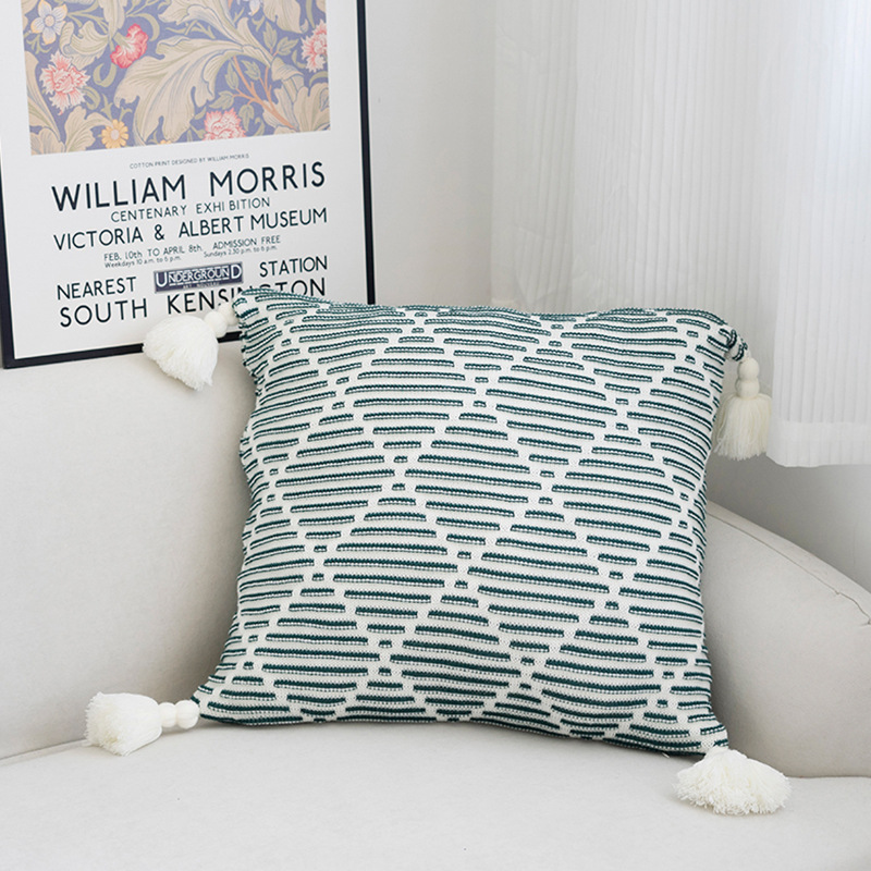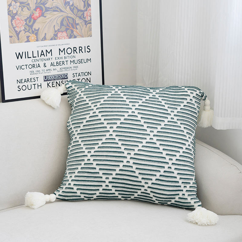 北欧风沙发抱枕靠垫床头方形鱼尾大吊穗针织抱枕套轻奢客厅靠枕