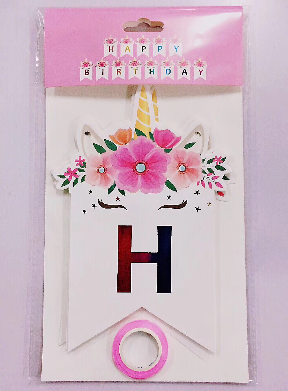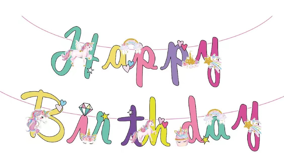 新款独角兽挂旗卡通挂旗烫金独角兽派对生日庆生派对拉旗生日挂旗