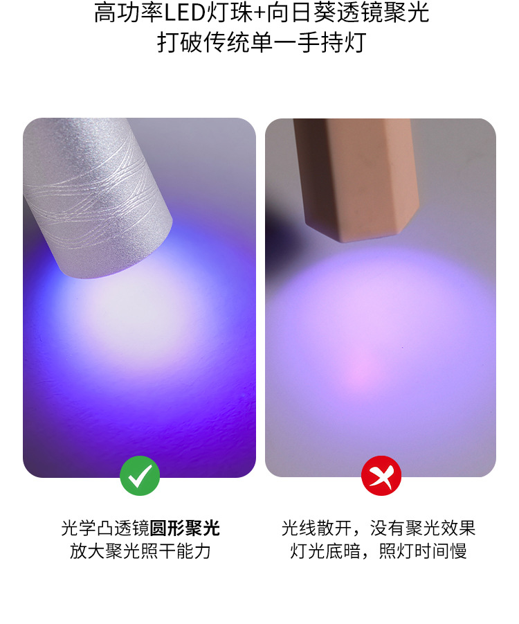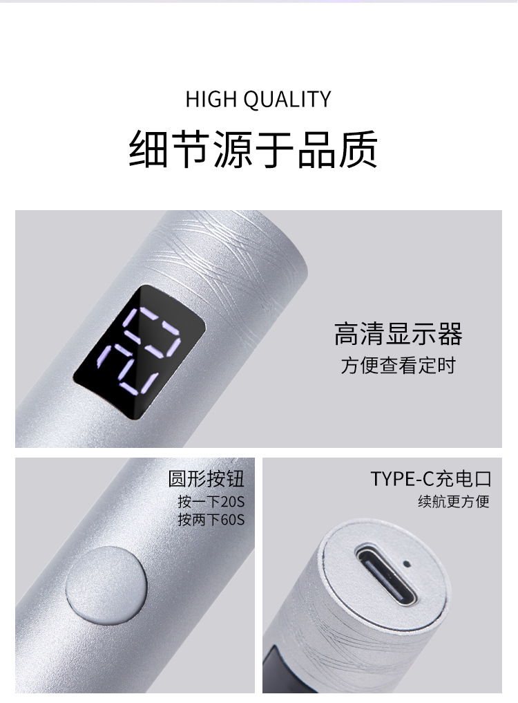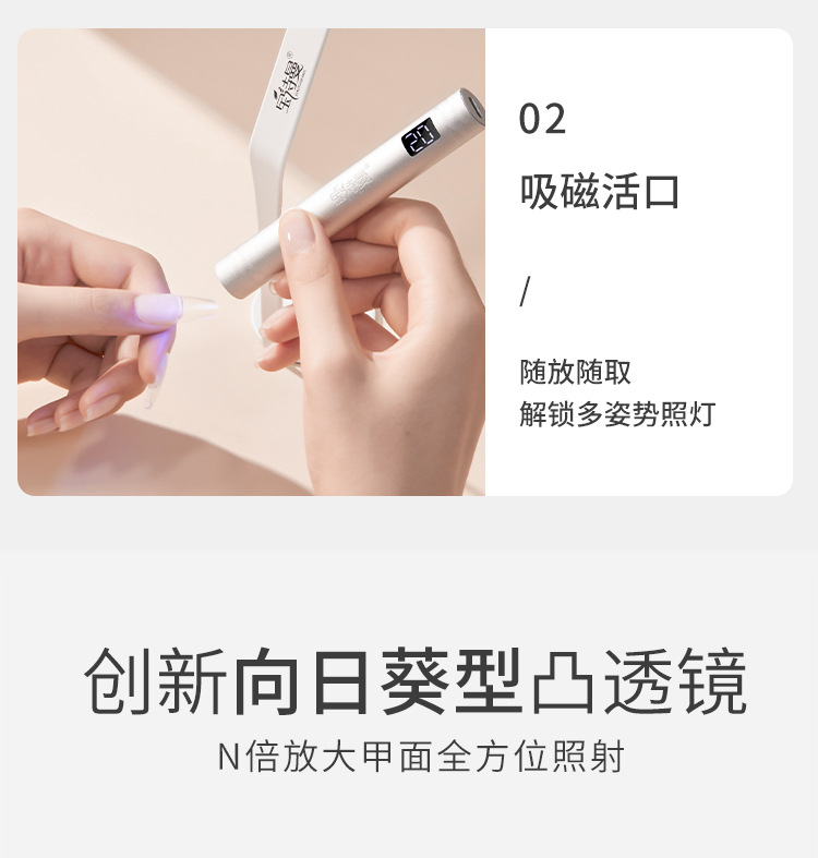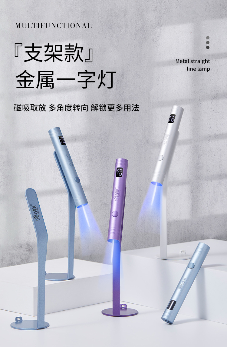 新款金属一字灯指甲聚光款美甲光疗灯手持便携蓄电迷你烤灯