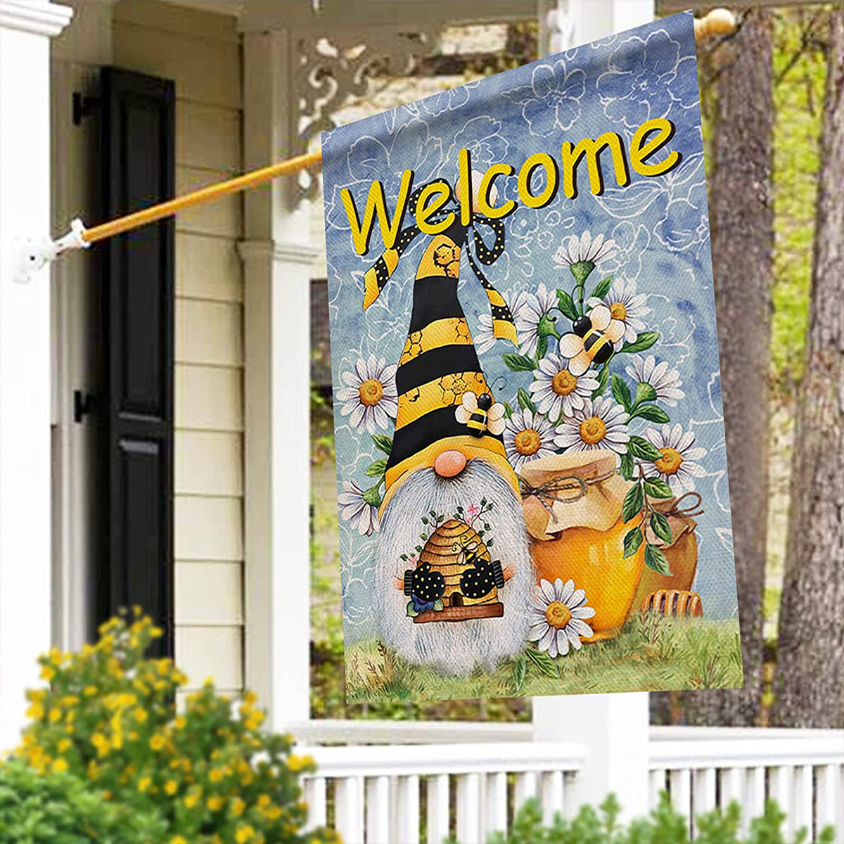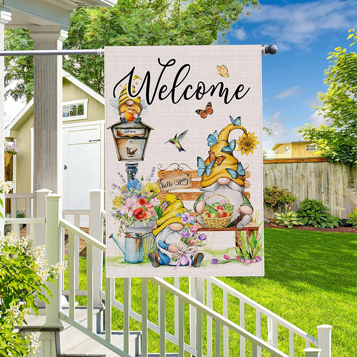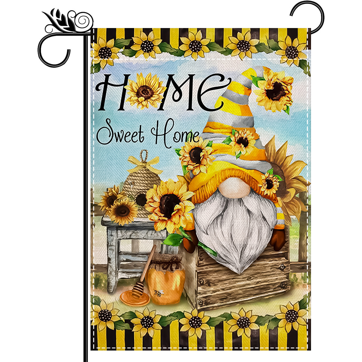 跨境新款向日葵蜜蜂南瓜小矮人花园旗庭院户外装饰节日氛围花园旗