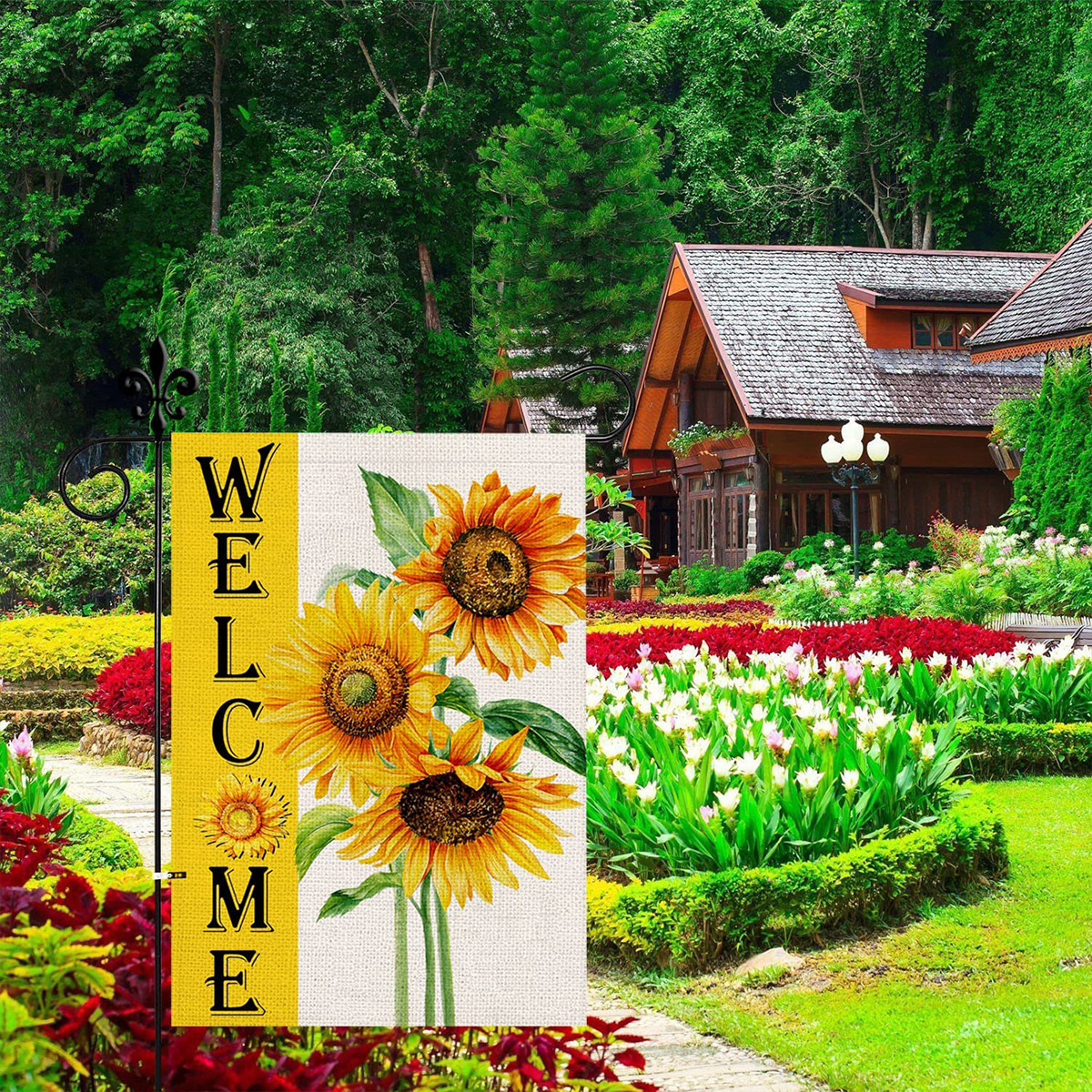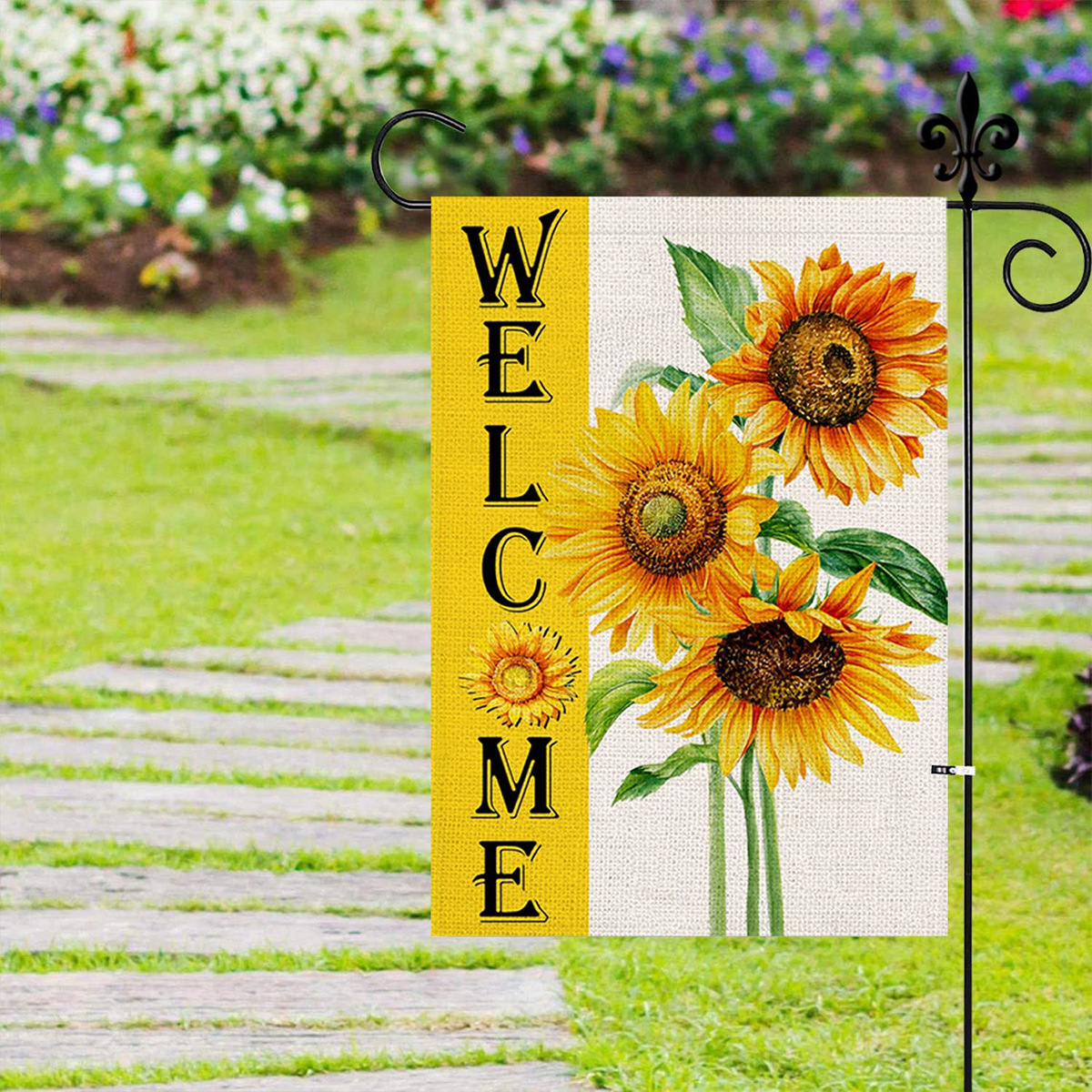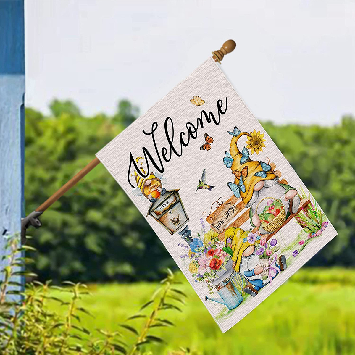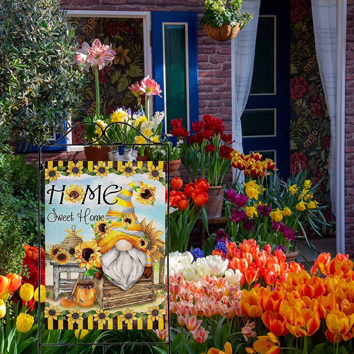跨境新款向日葵蜜蜂南瓜小矮人花园旗庭院户外装饰节日氛围花园旗