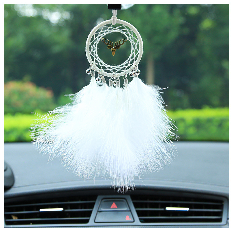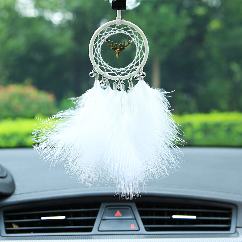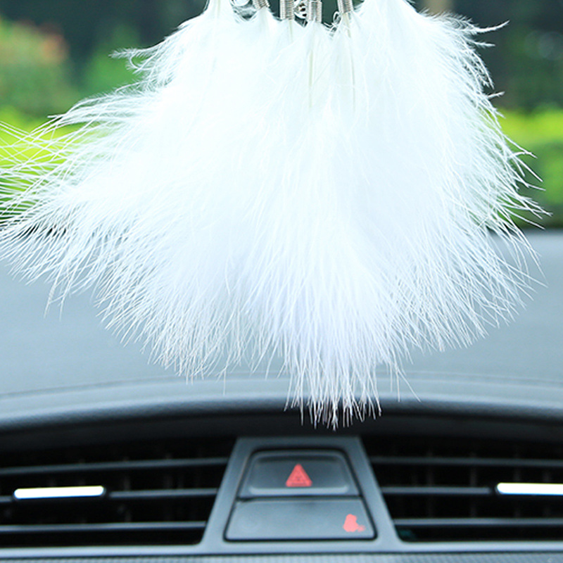 厂家直销一路平安车内后视镜小挂件创意白色羽毛汽车装饰车载吊饰
