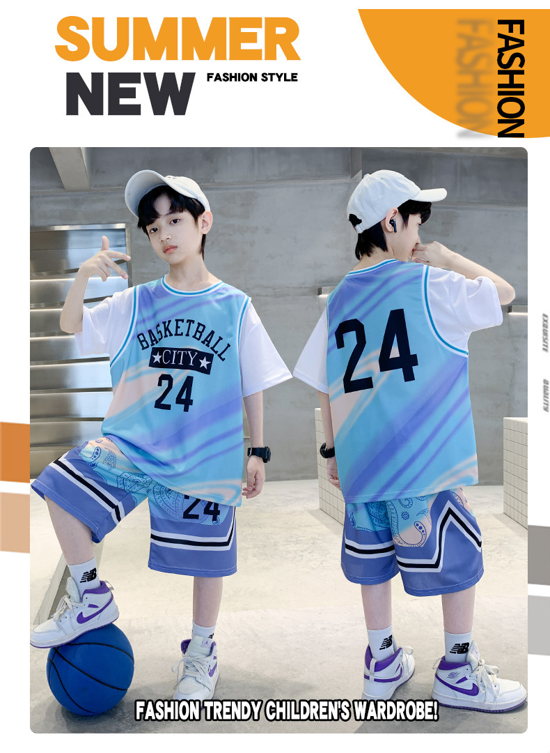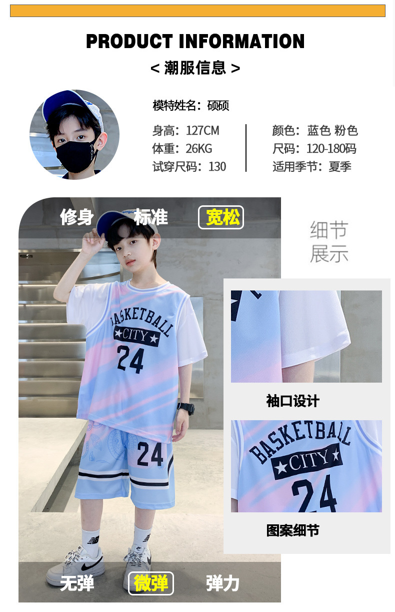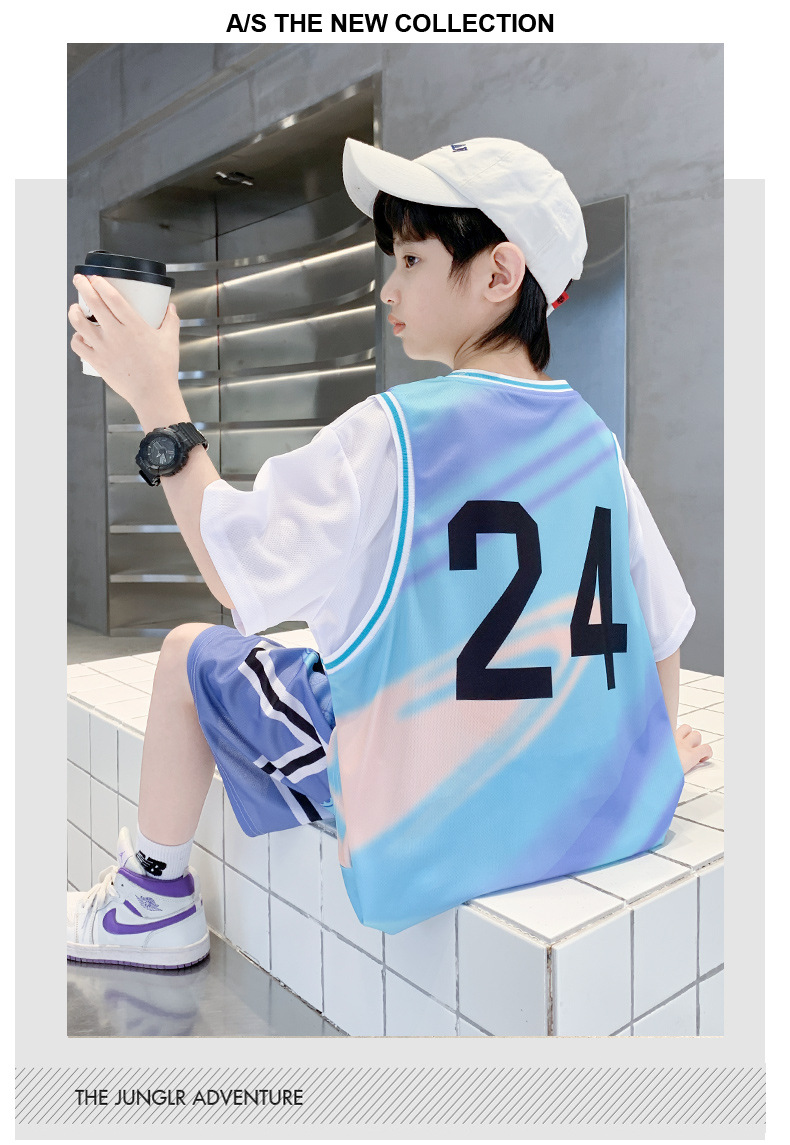 儿童24号科比篮球服夏季速干短袖球衣男童中大童装运动套装假两件