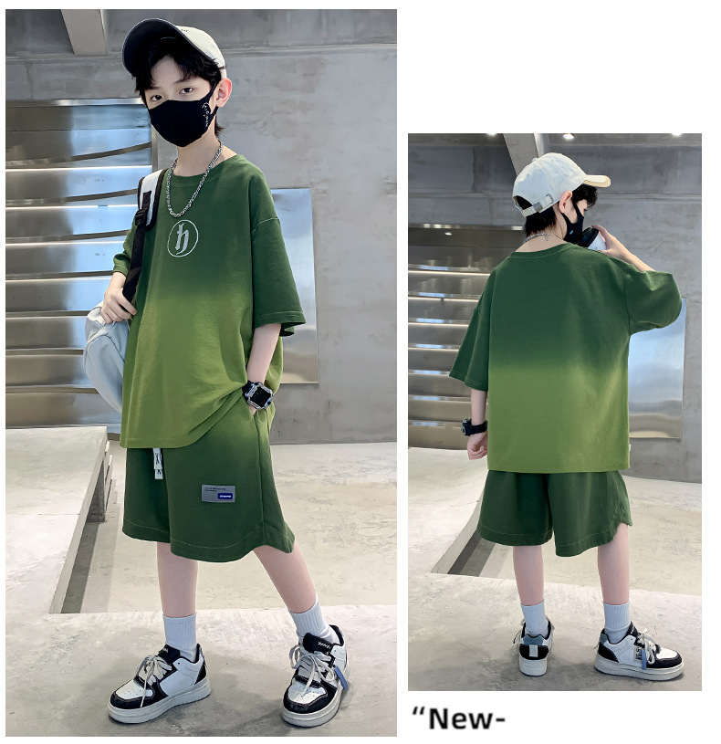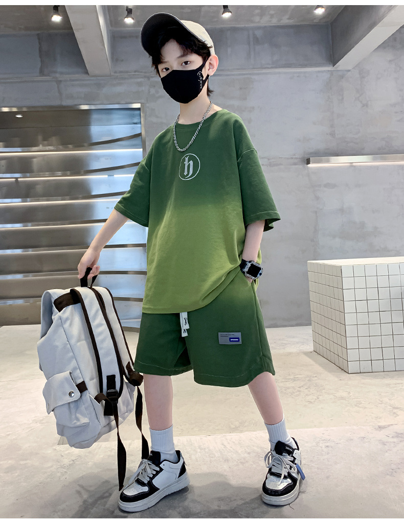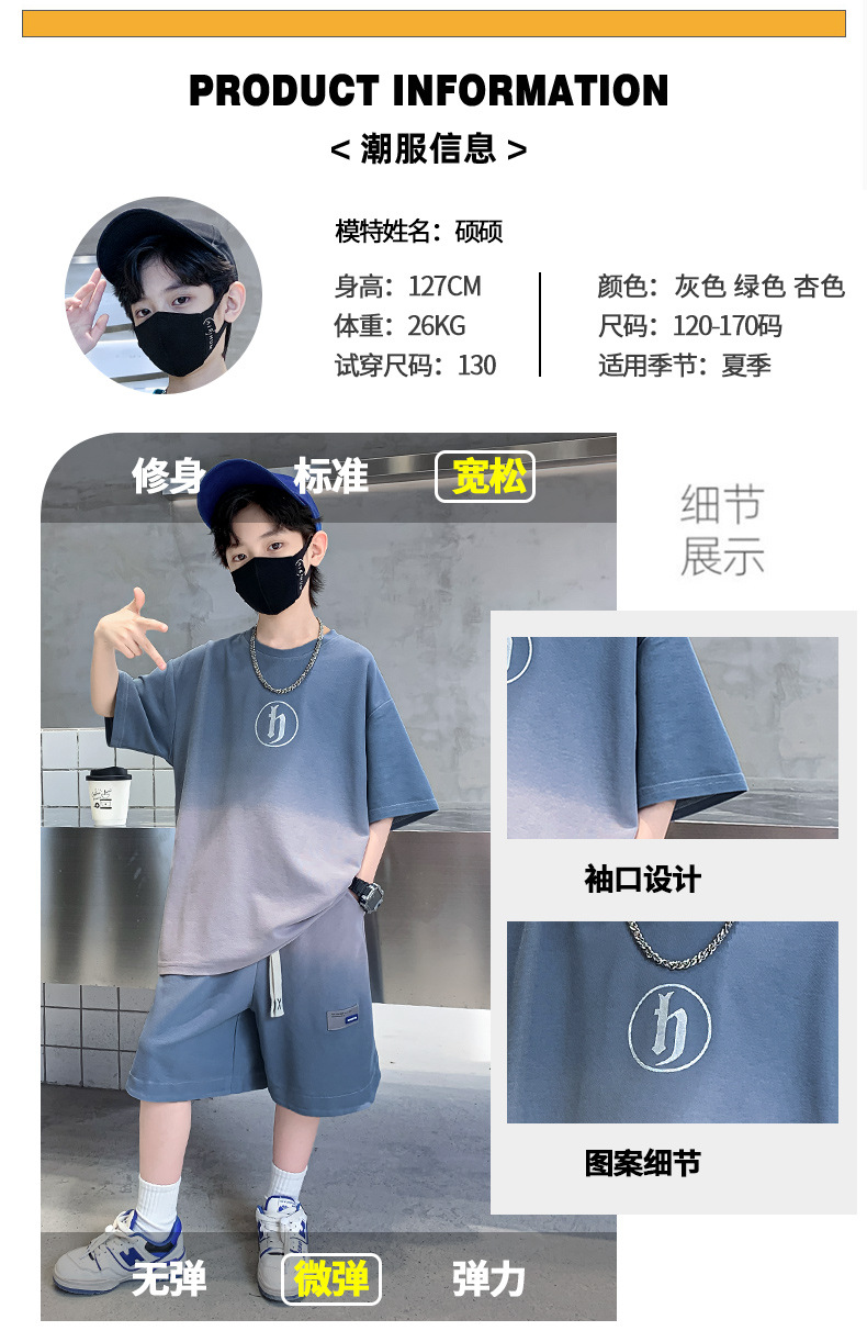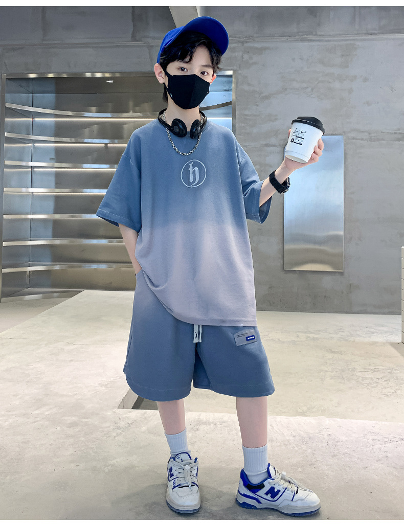 男孩夏季套装纯棉透气吸湿2023新款中大童男童短袖短裤两件套渐变
