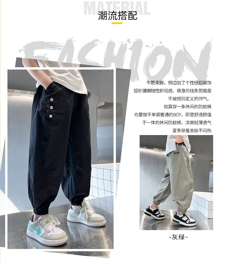男童夏季裤子透气薄款纯棉2023新款中大童男孩吸湿薄款防蚊裤纯色
