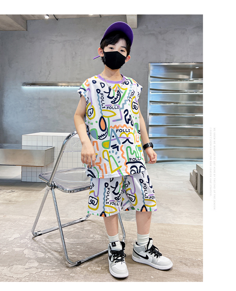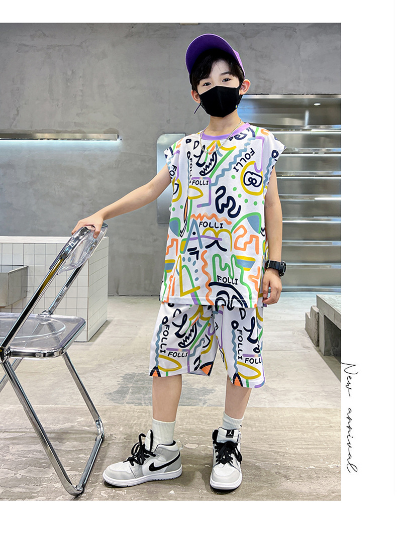 儿童装男童夏装背心套装2023新款中大童夏季男孩薄款运动夏款帅气