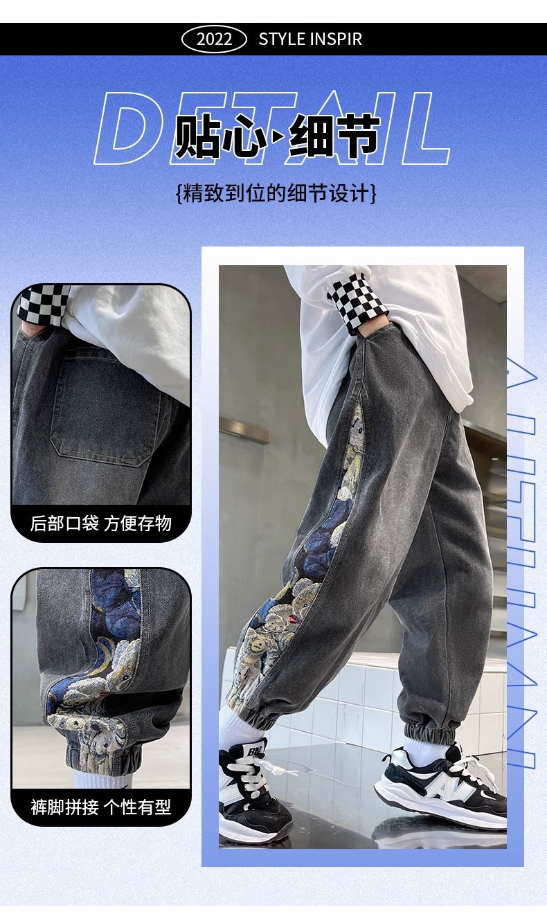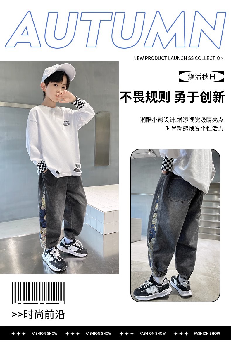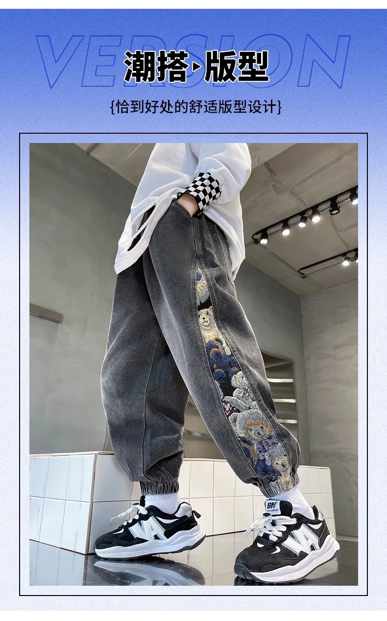 童装男童春装牛仔裤2023新款儿童长裤春秋冬款中大童男孩加绒裤子