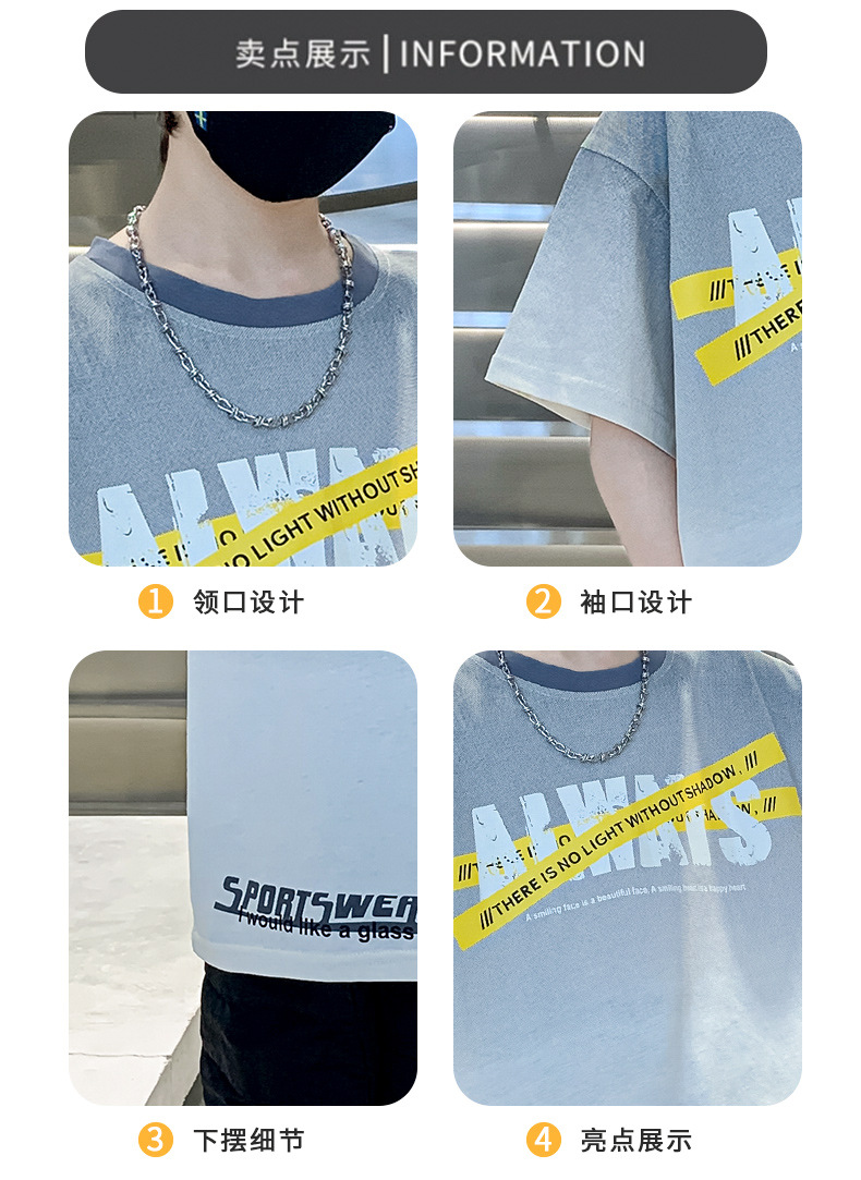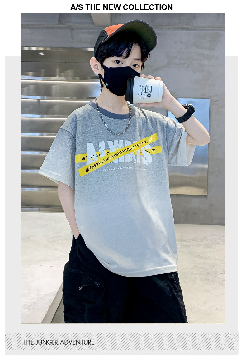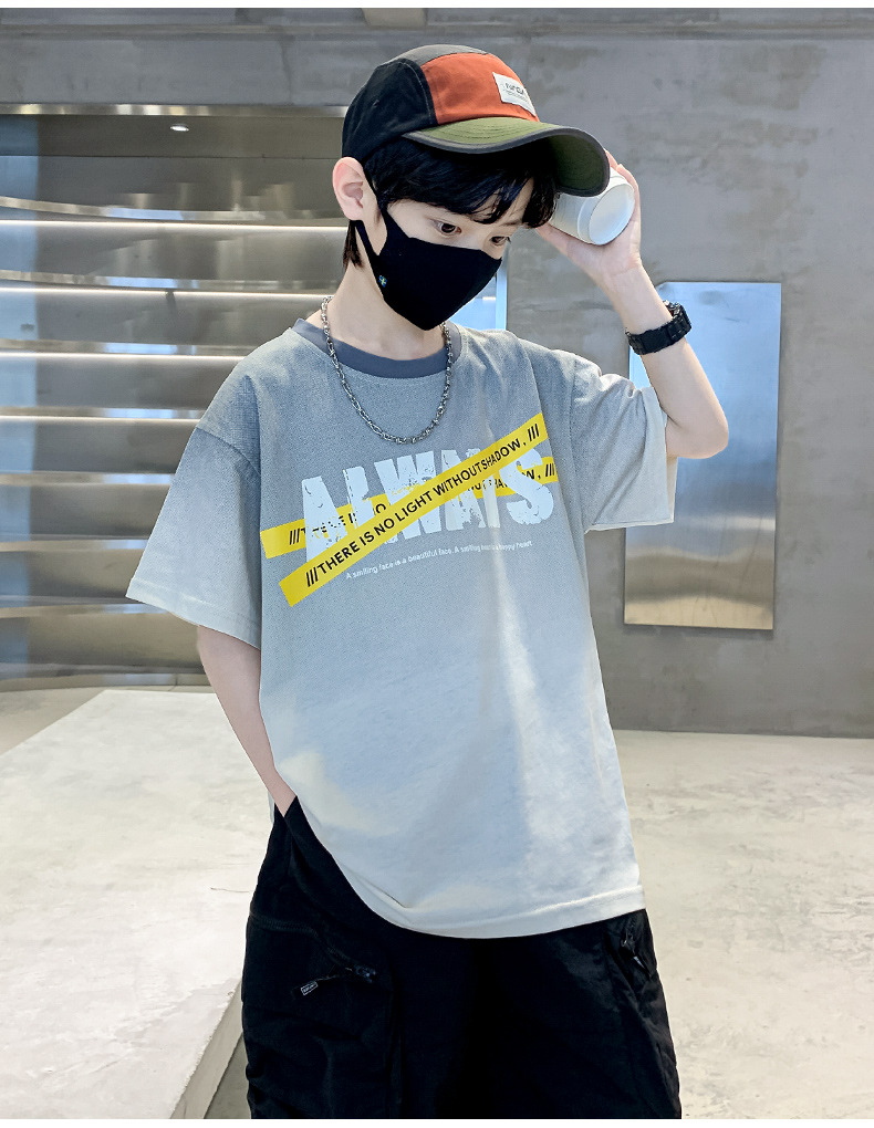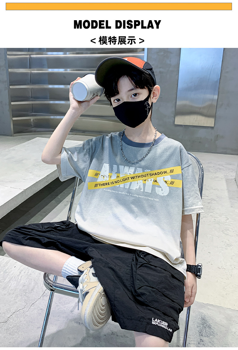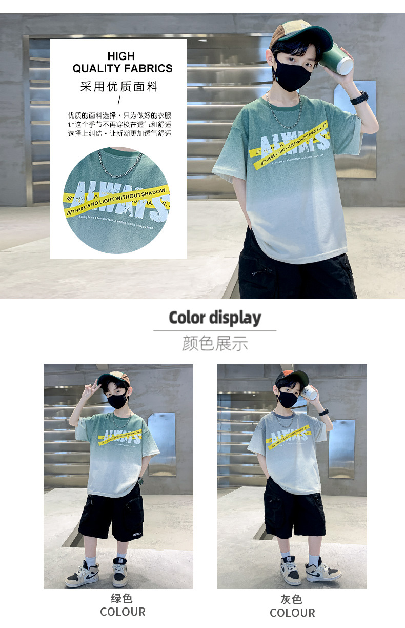 男童短袖T恤透气吸湿纯棉2023夏季新款中大童男孩短袖潮款渐变色