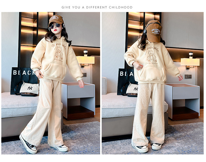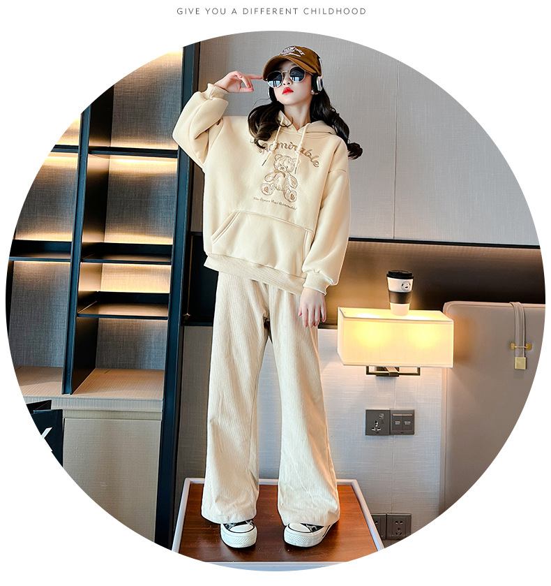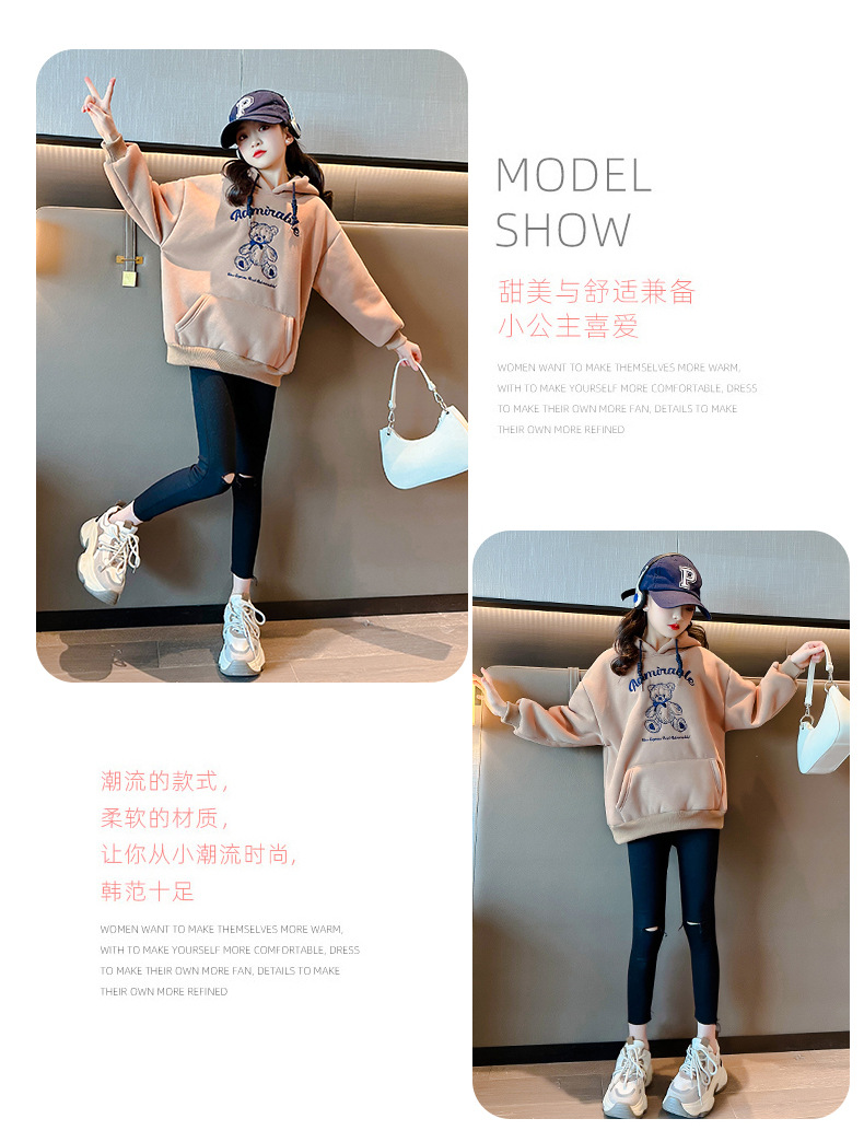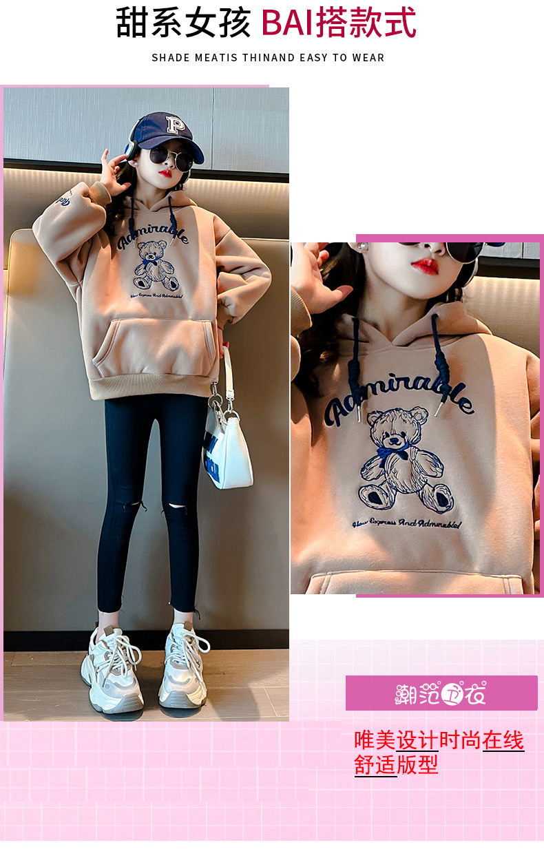 童装连帽卫衣纯棉刺绣小熊2023年春季新款中大童女孩潮款卫衣时尚