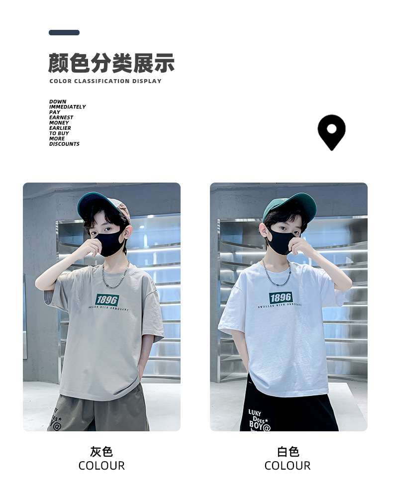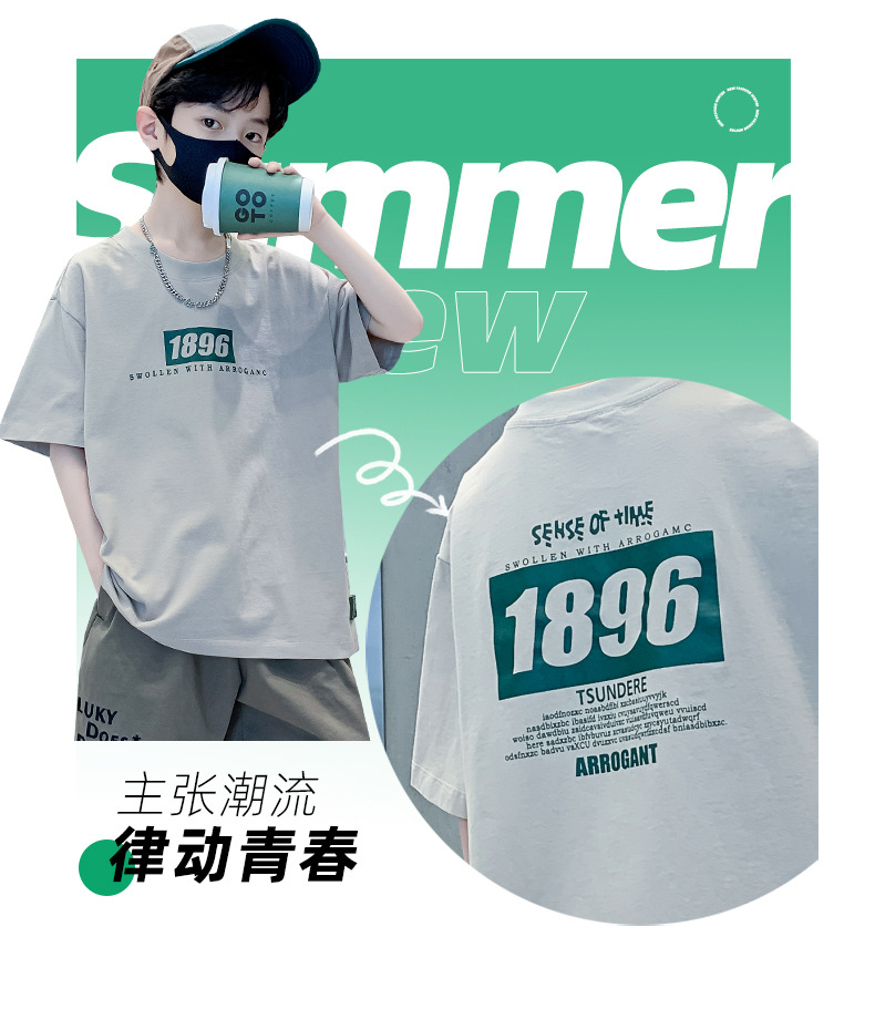 男童短袖纯棉T恤透气吸湿2023夏季新款中大童男孩短袖简约1896