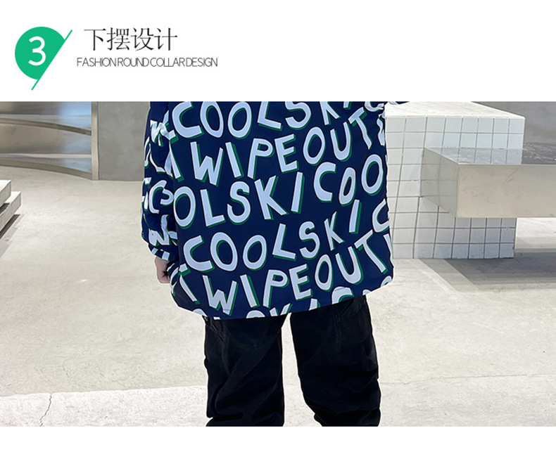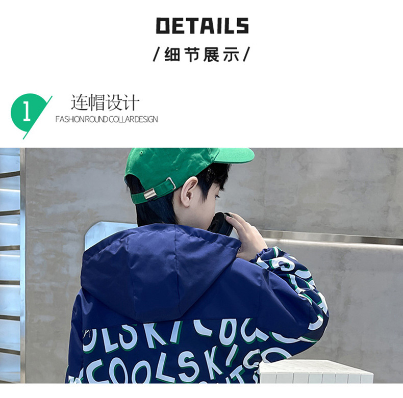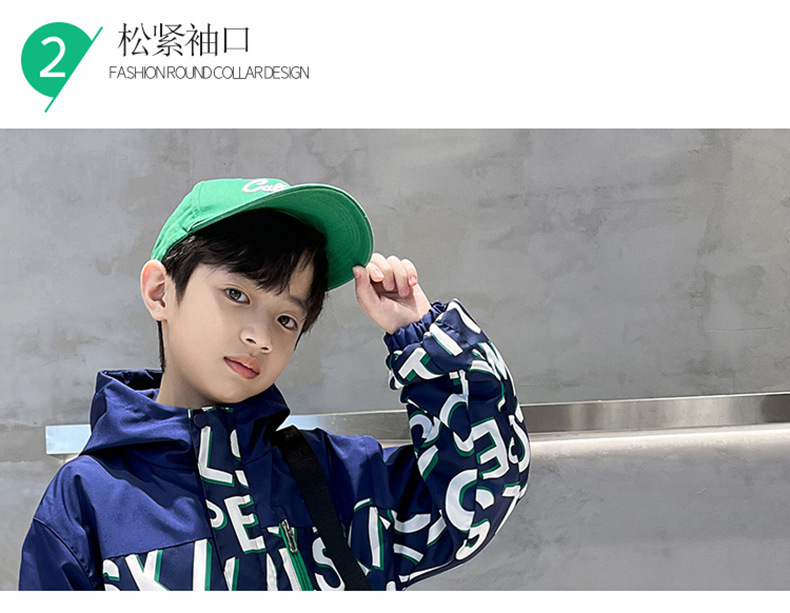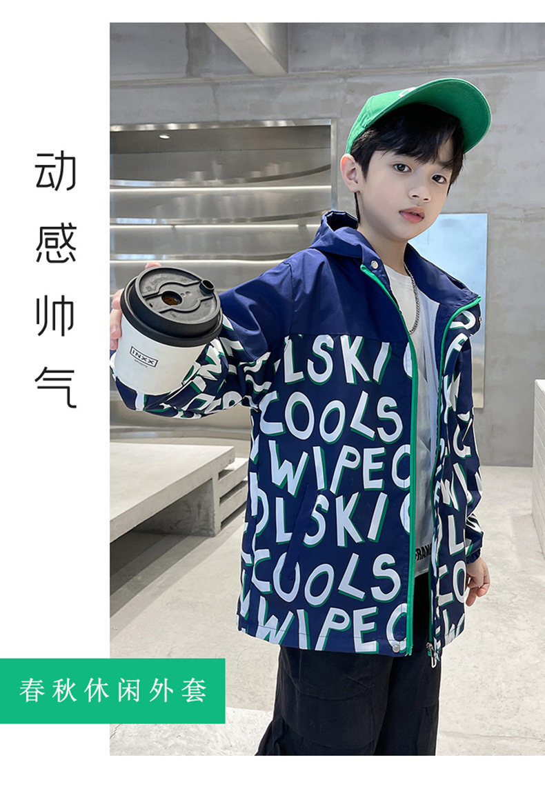 男童印花外套春秋款百搭2023新款中大童男孩连帽外套夹克炸街百搭