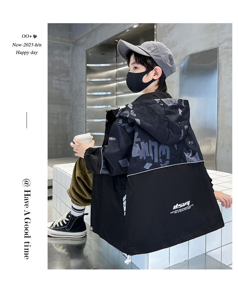 男童外套春秋款2023新款潮童装炸街男孩冲锋衣外套三防面料潮款