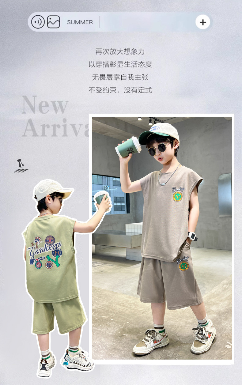 儿童装男童夏装背心套装2023新款中大童夏季男孩运动速干夏款帅气