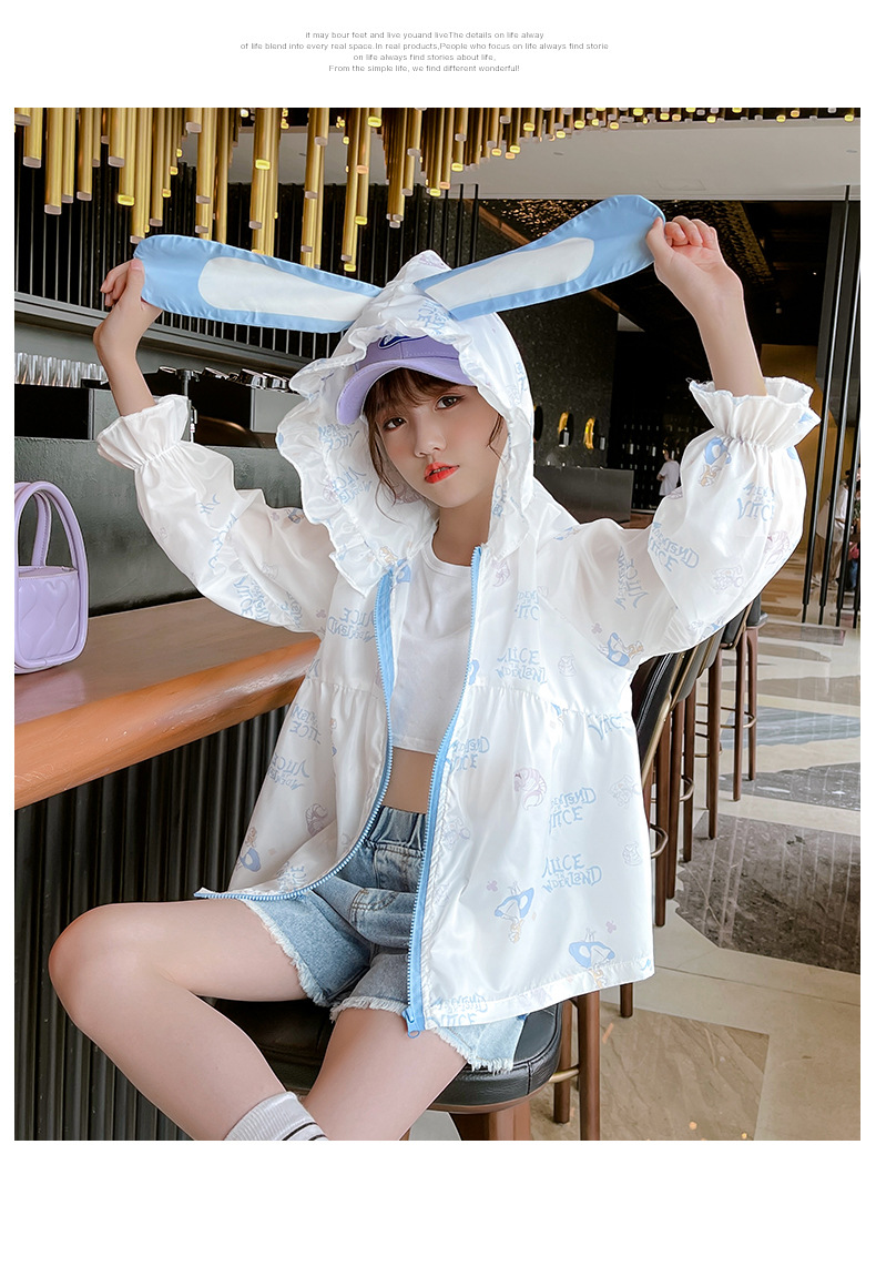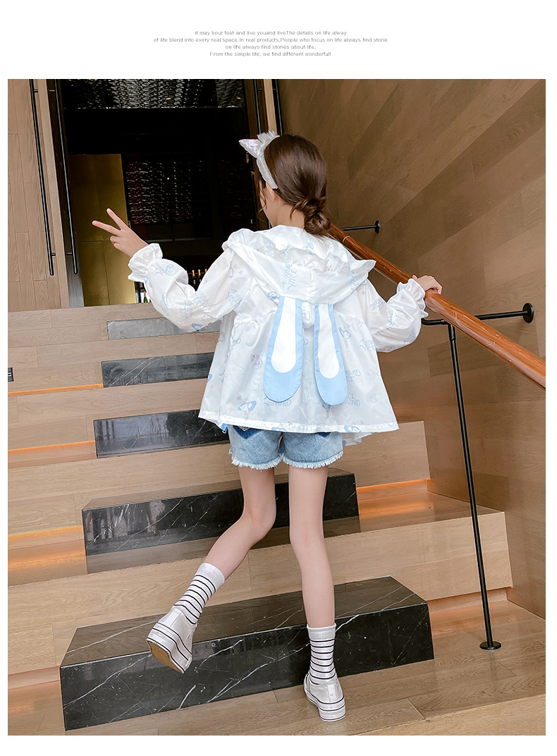 女童防晒衣兔耳朵户外夏季外套2023夏季新款中大童女孩防晒衣卡通