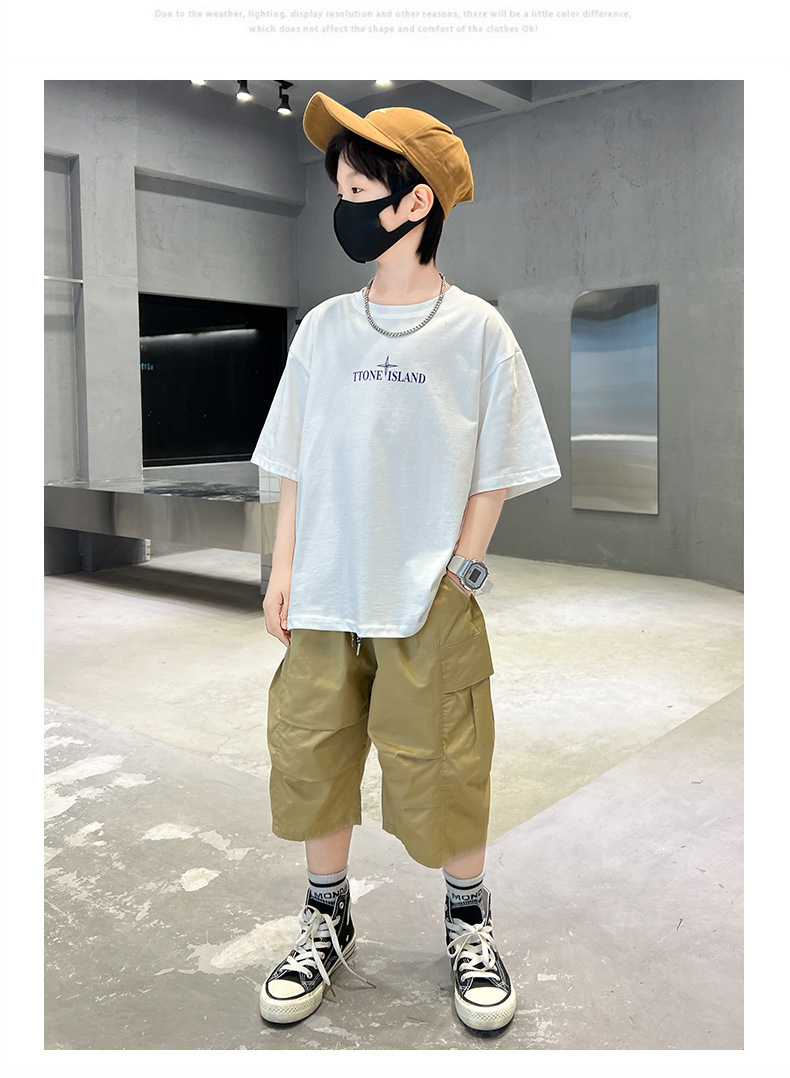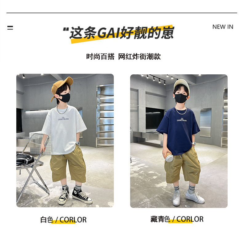 童装夏季纯棉套装简约潮牌2023夏季新款中大童男孩短袖短裤潮款