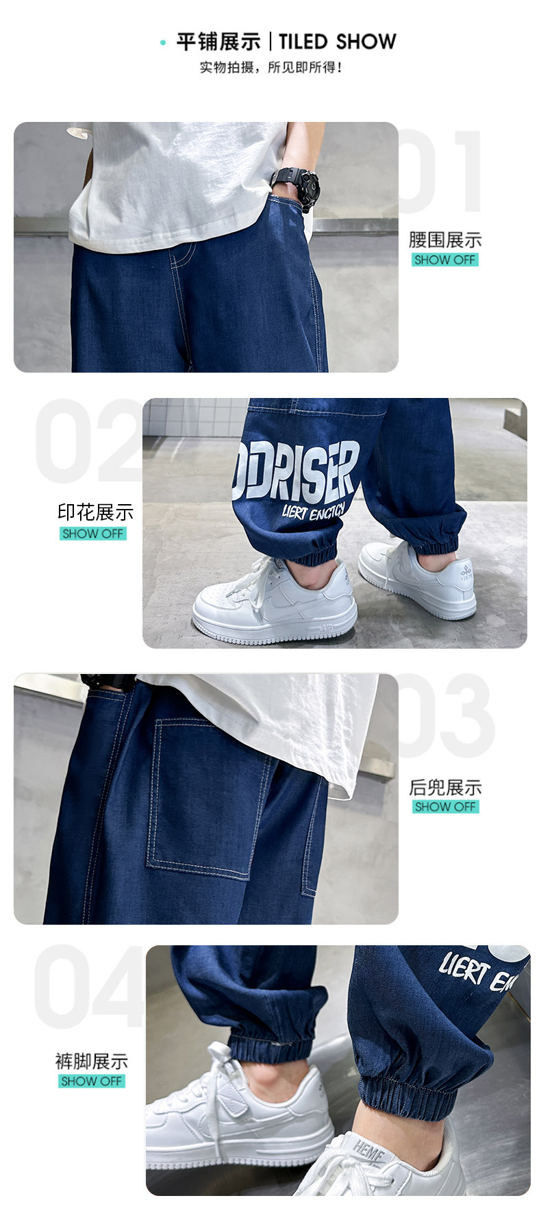男童夏季薄款裤子轻薄透气2023夏季新款男孩冰丝防蚊裤天丝牛仔裤