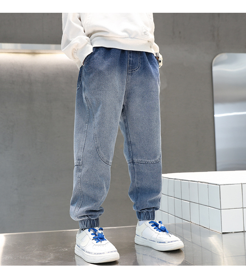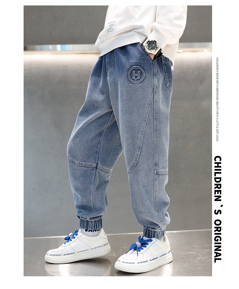 男童夏季牛仔裤H压花冰丝牛仔2023夏季新款中大童男孩牛仔长裤