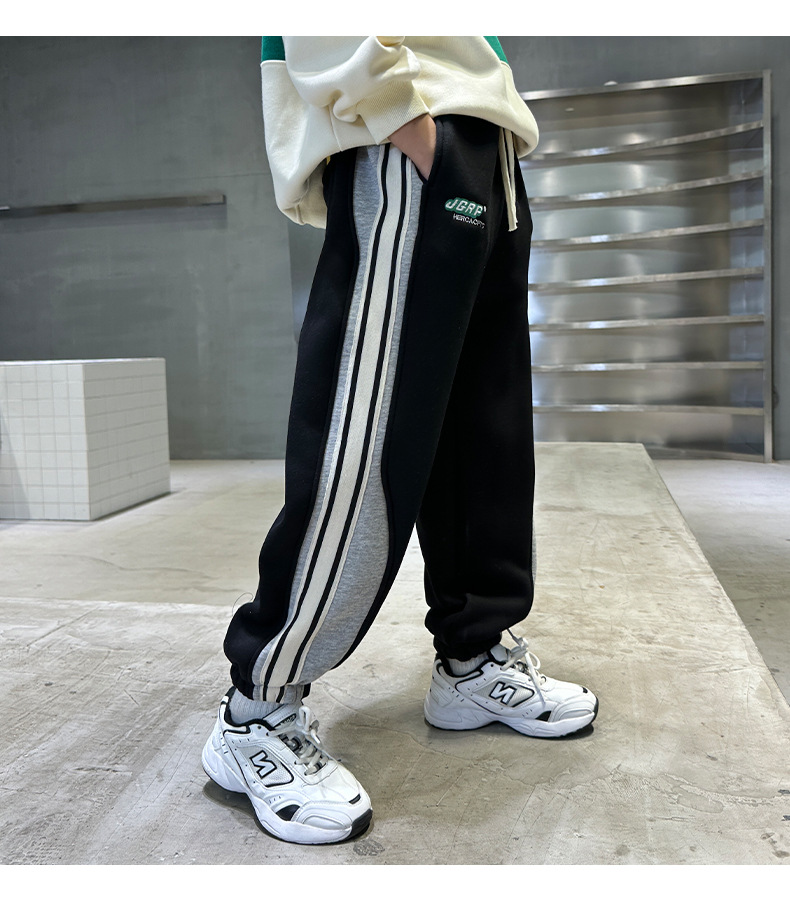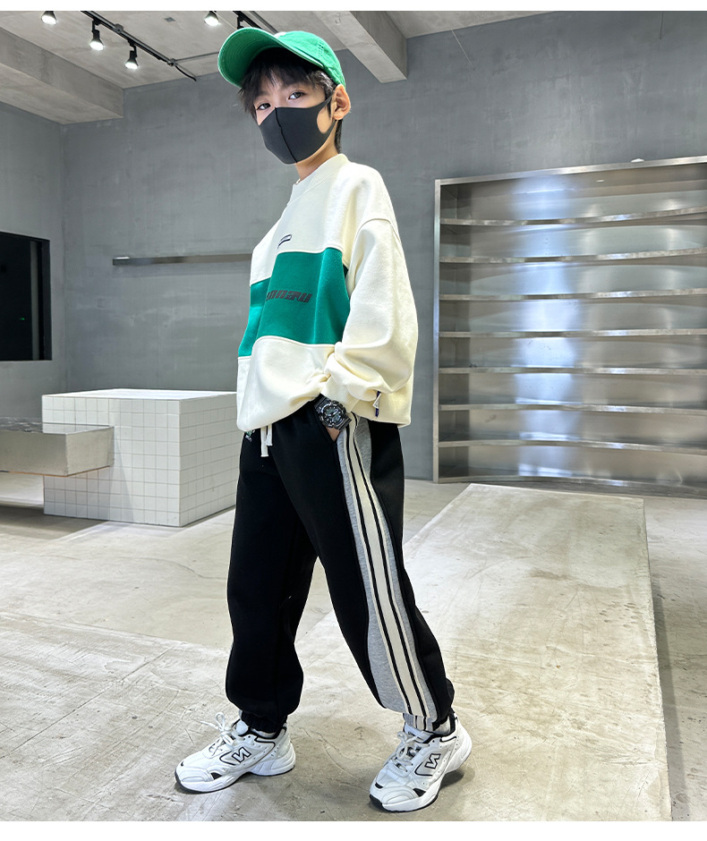 童装春款卫裤纯棉透气吸湿2023春季新款中大童男孩长裤拼色潮款