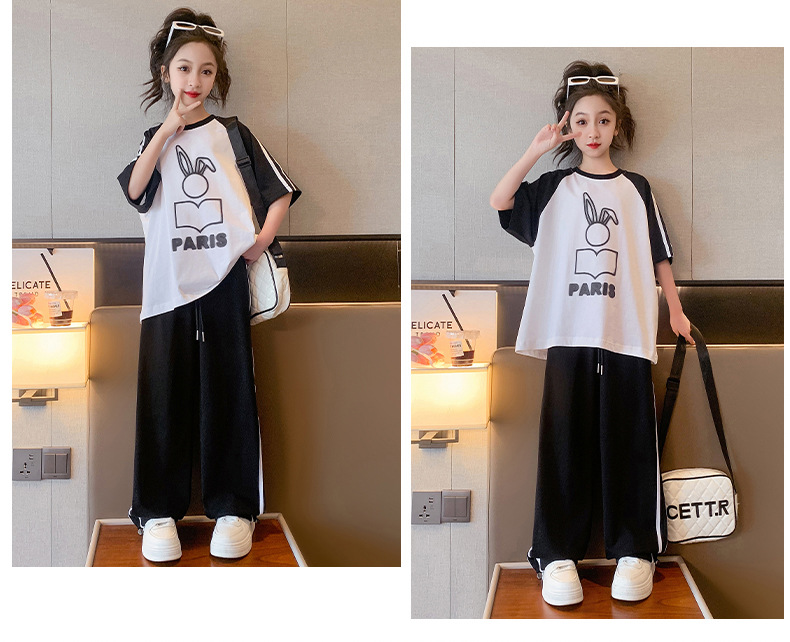 女孩夏季套装纯棉透气吸湿2023新款大童女童短袖长裤两件套朱迪棉