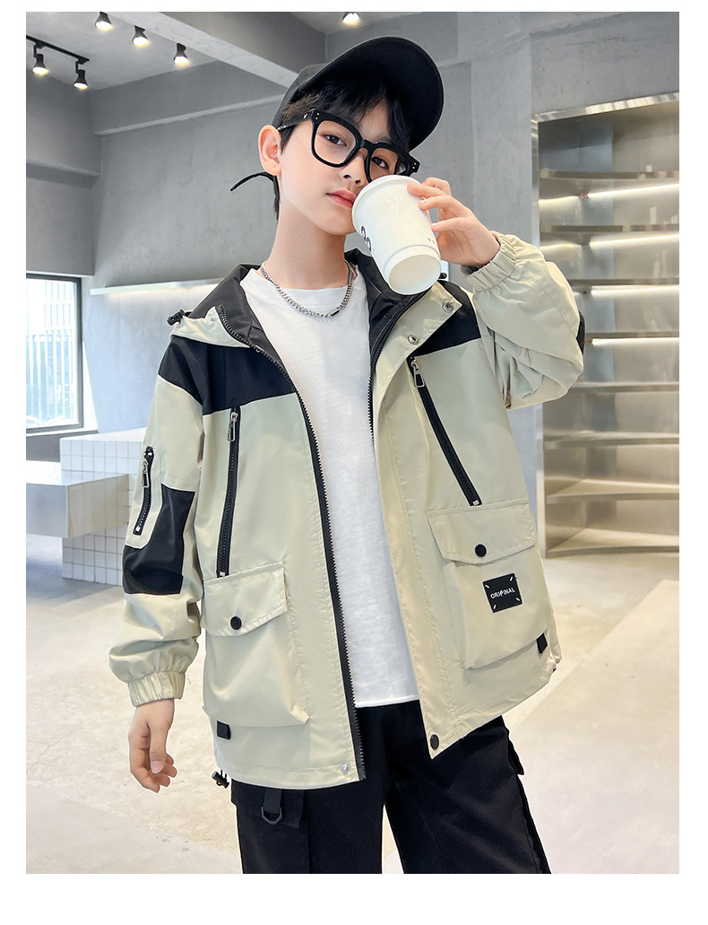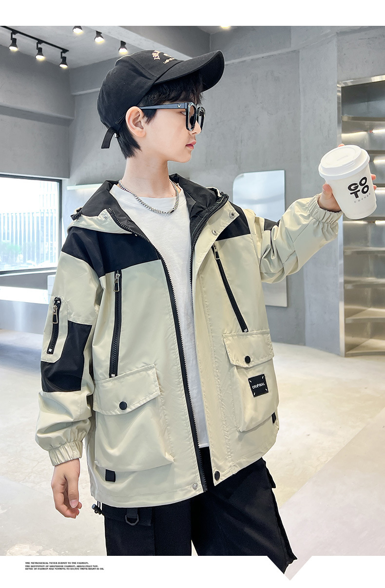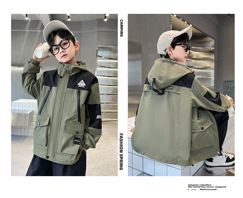 男童春装冲锋衣春秋款2023新款中大童工装外套秋季撞色三防面料
