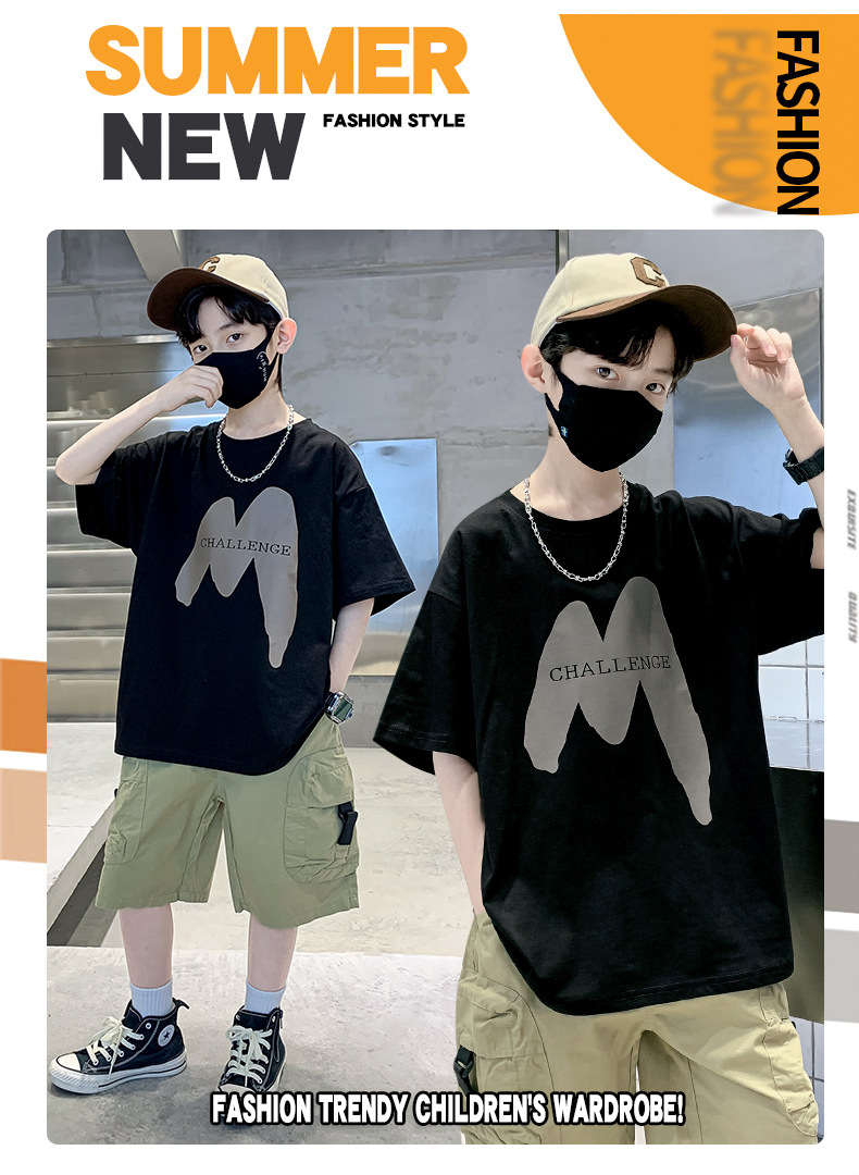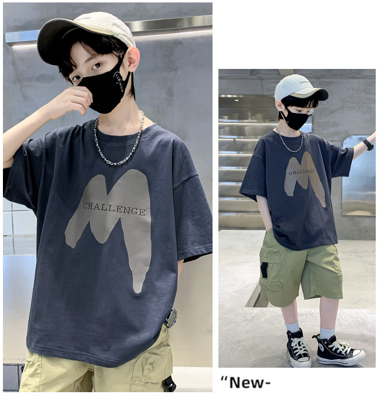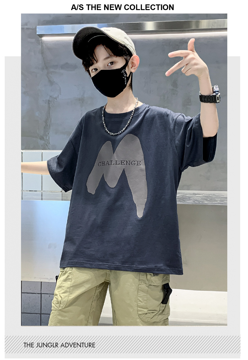 男童短袖T恤透气吸湿纯棉2023夏季新款中大童男孩短袖简约潮款M