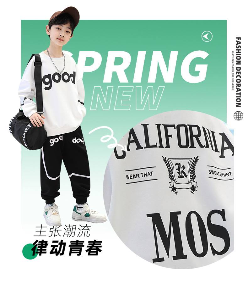 男童春装套装2023新款儿童运动休闲两件套中大童装时髦春秋男孩潮