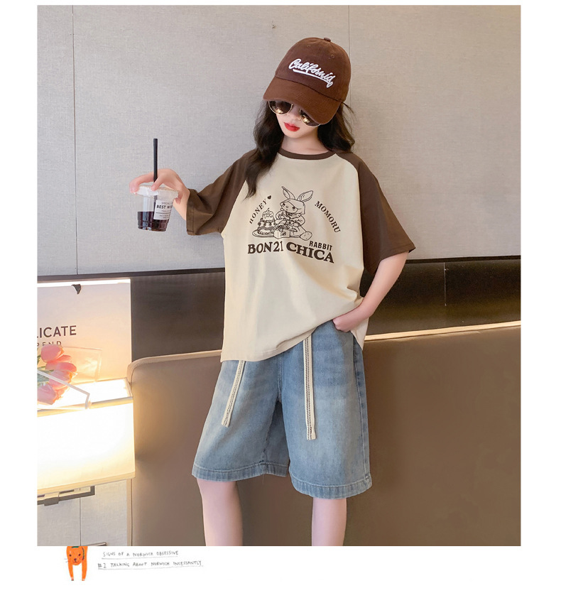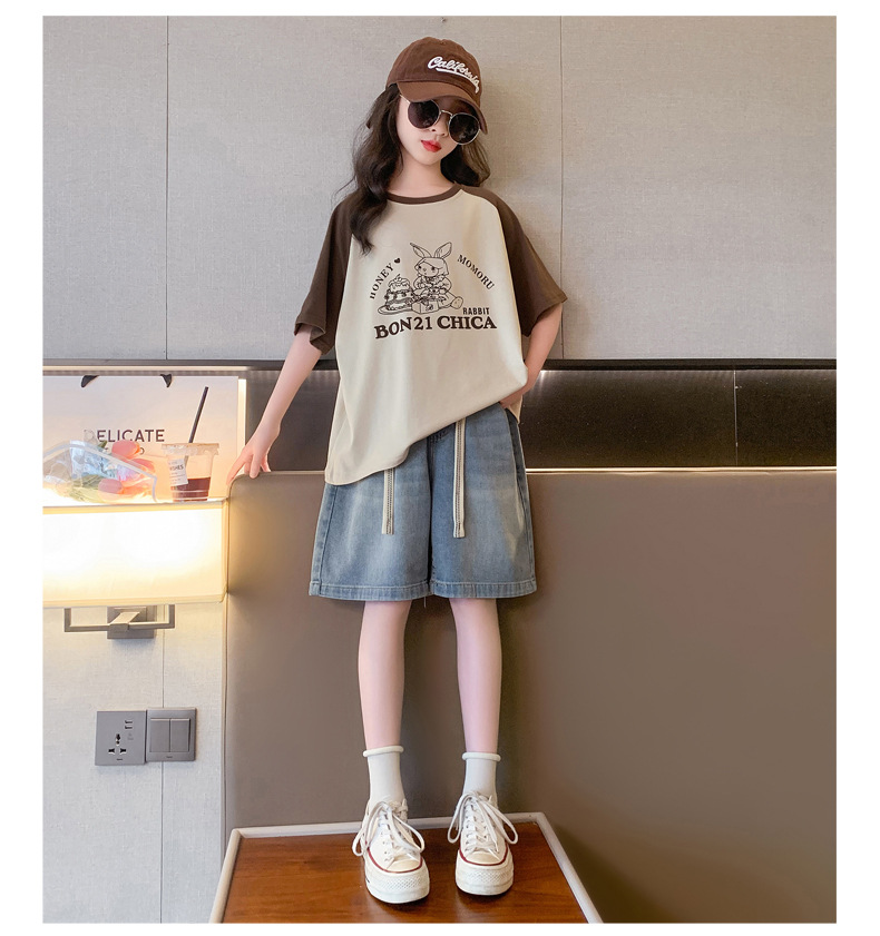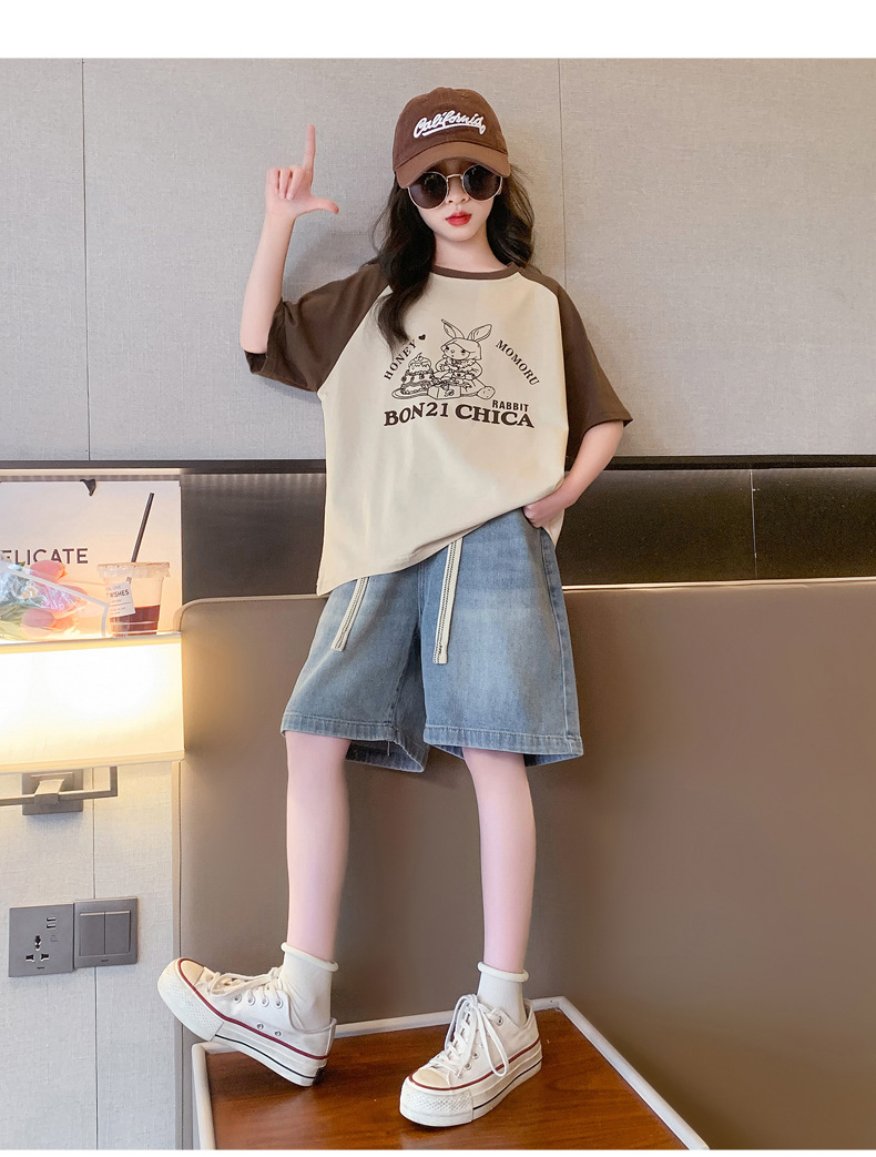 女孩夏季套装透气吸湿2023新款中大童女童纯棉短袖短裤两件套潮款