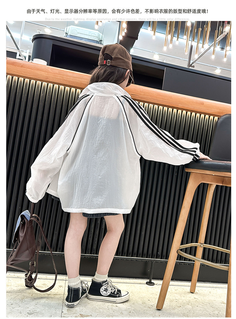 女孩防晒衣户外夏季薄外套2023夏季新款中大童女孩防晒衣条纹潮款