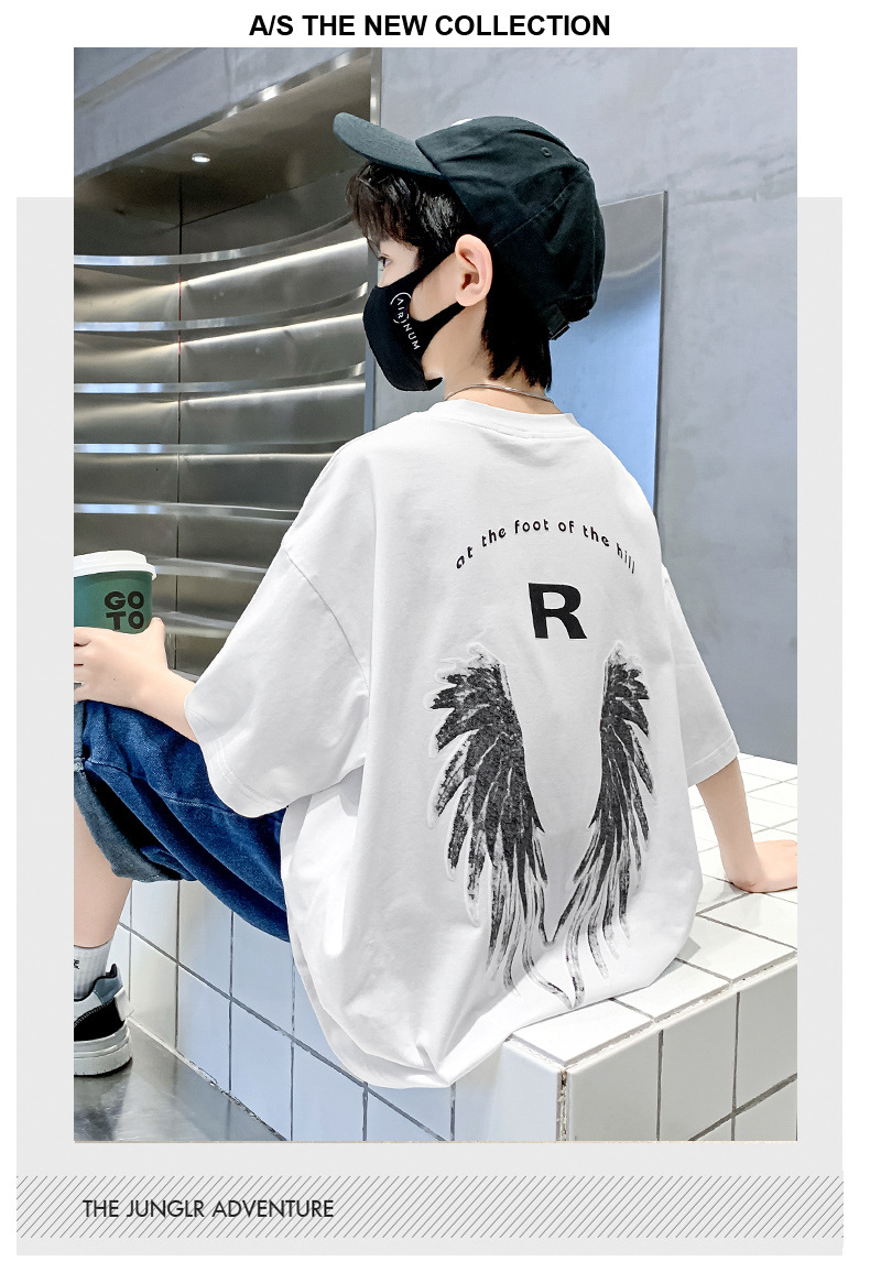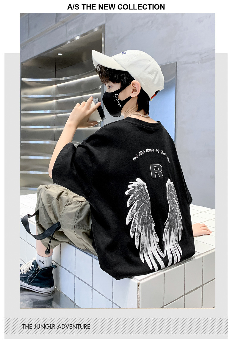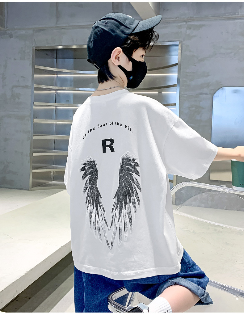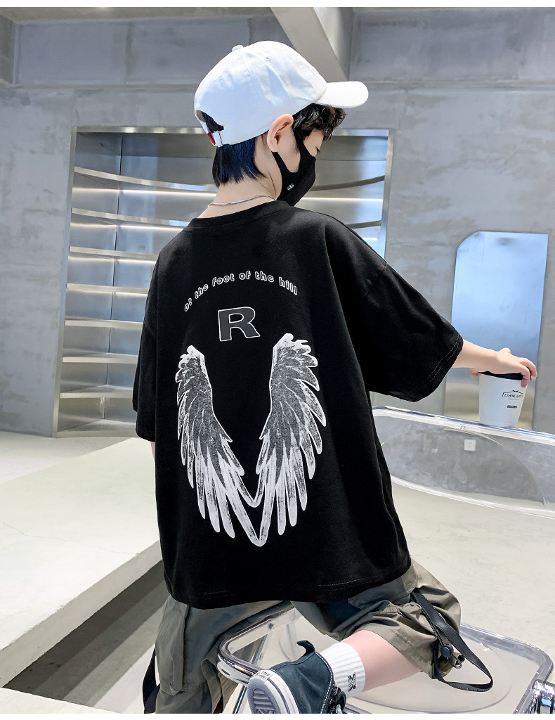 男童短袖T恤透气吸湿纯棉2023夏季新款中大童男孩短袖天使翅膀