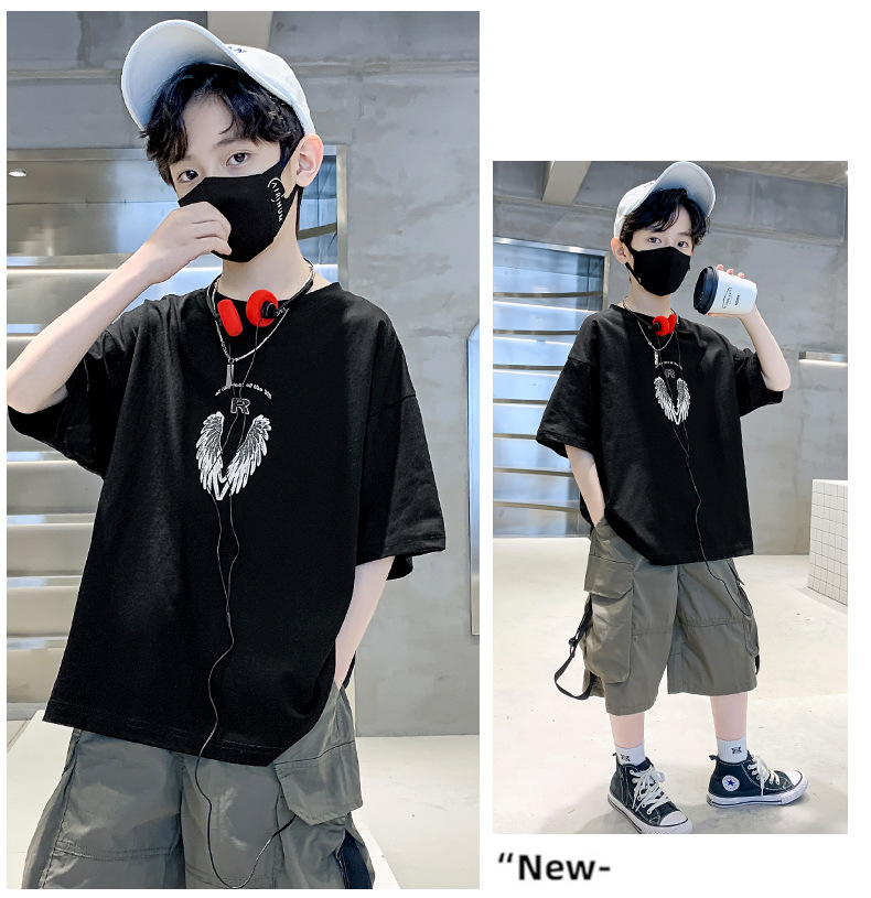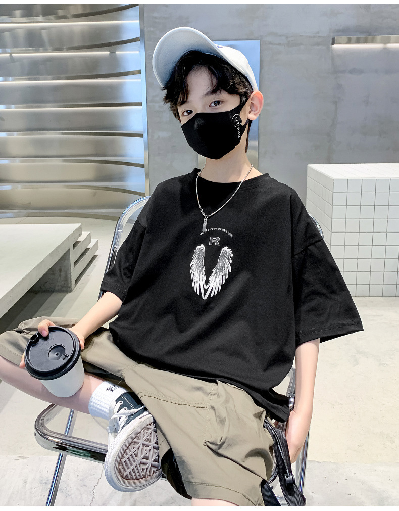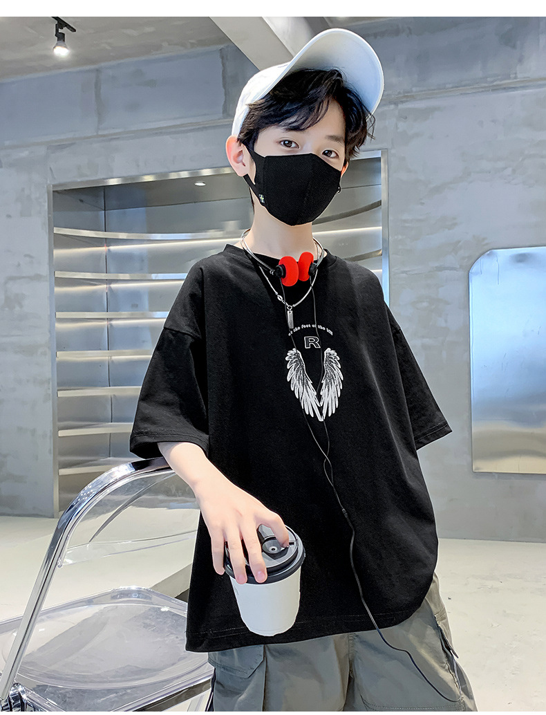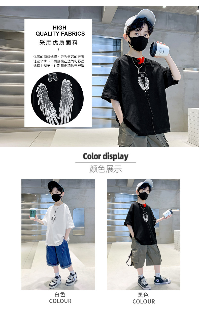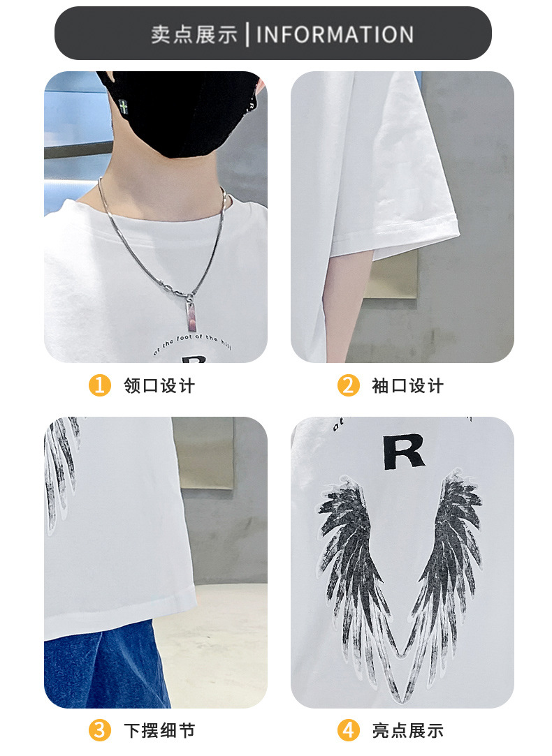 男童短袖T恤透气吸湿纯棉2023夏季新款中大童男孩短袖天使翅膀