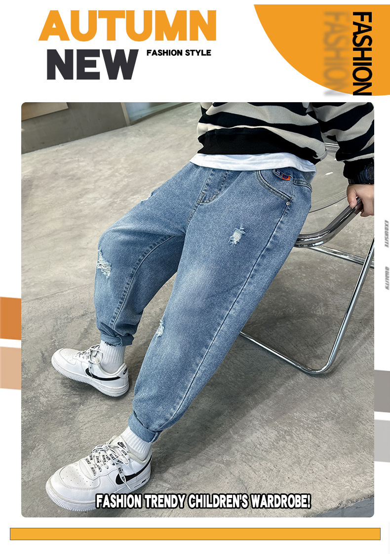 男童牛仔裤春秋裤子2023新款中大童宽松洋气破洞长裤时髦百搭裤子