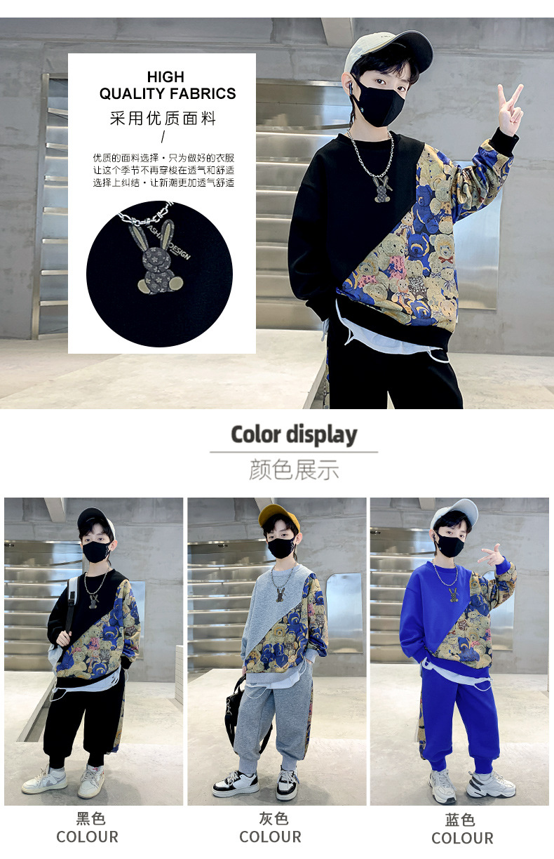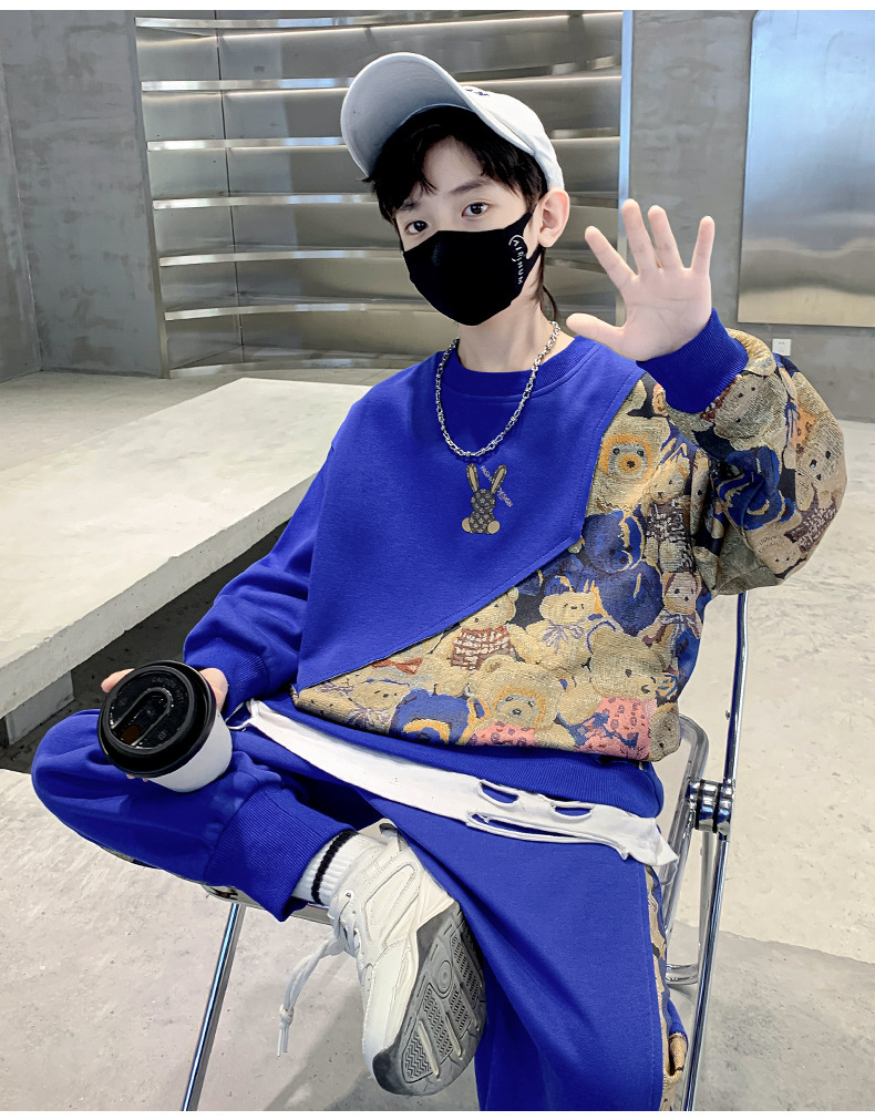 男童秋装运动小熊卫衣套装2023新款中大儿童装男孩秋季酷帅衣服潮