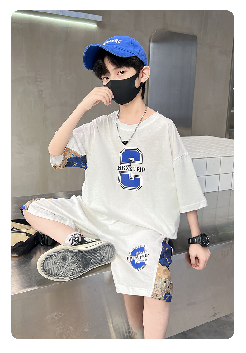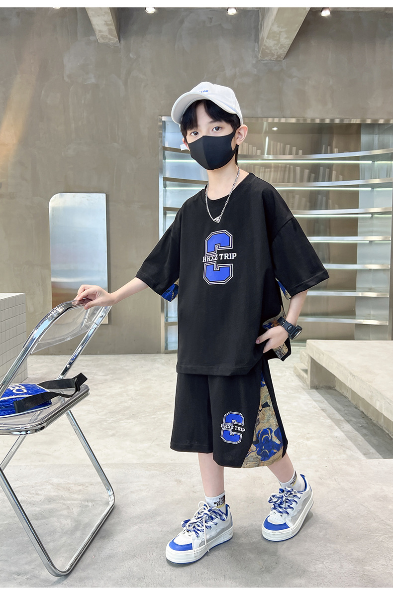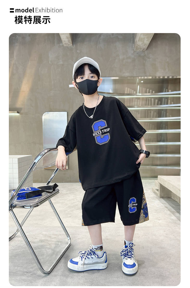 儿童夏季套装纯棉透气吸湿2023新款中大童男童短袖短裤两件套C标