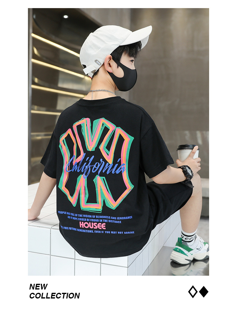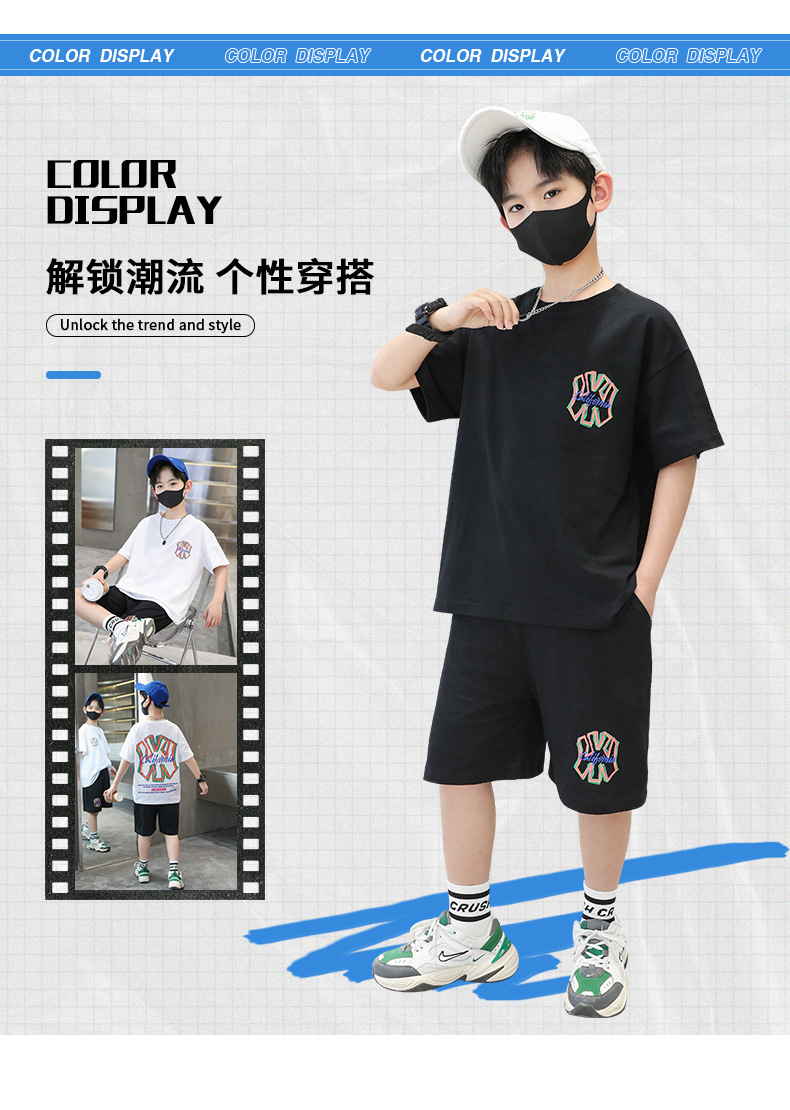 男童夏季套装纯棉韩版潮款2023夏季新款中大童男孩短袖短裤炸街