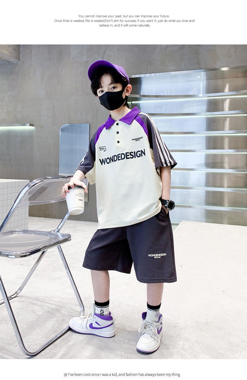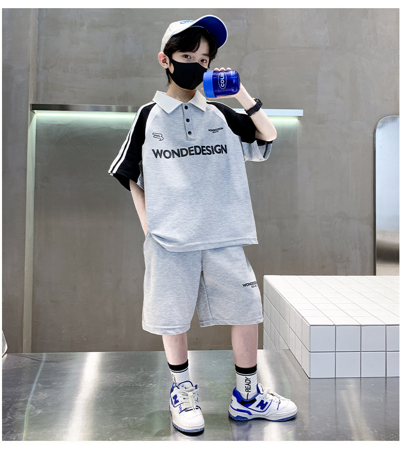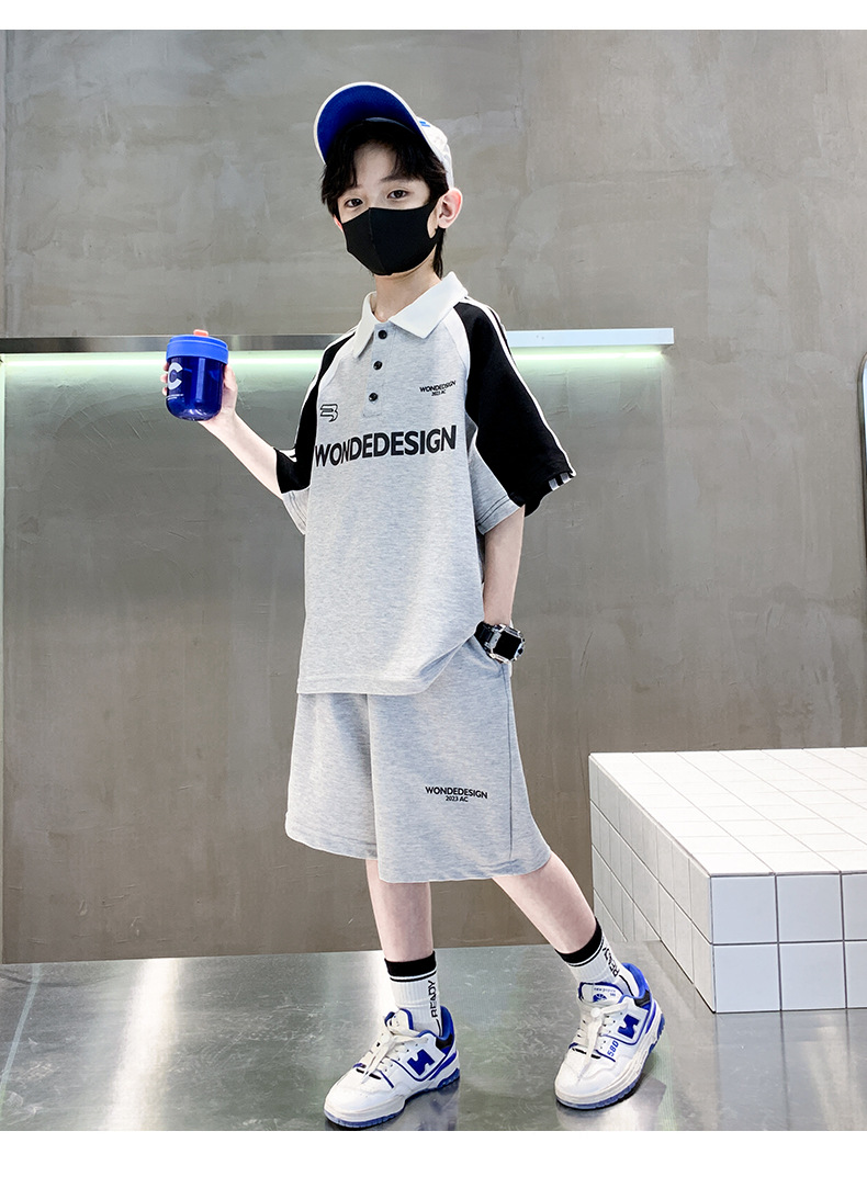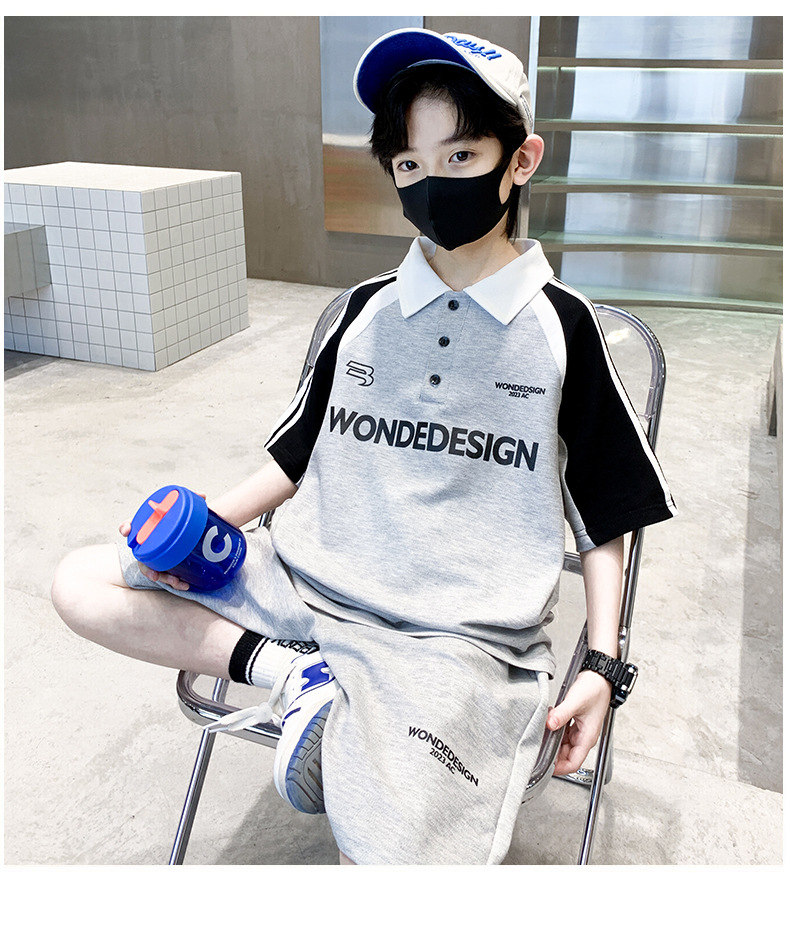 男童夏季套装纯棉韩版2023夏季新款中大童男孩polo衫短袖短裤拼色