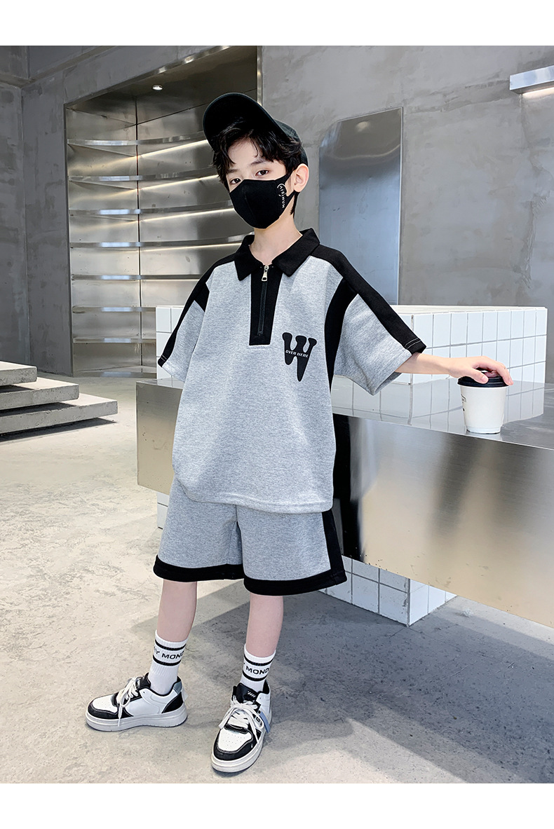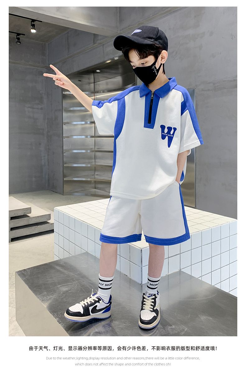 男童夏季套装纯棉W标拼色潮款2023夏季新款中大童男孩短袖短裤