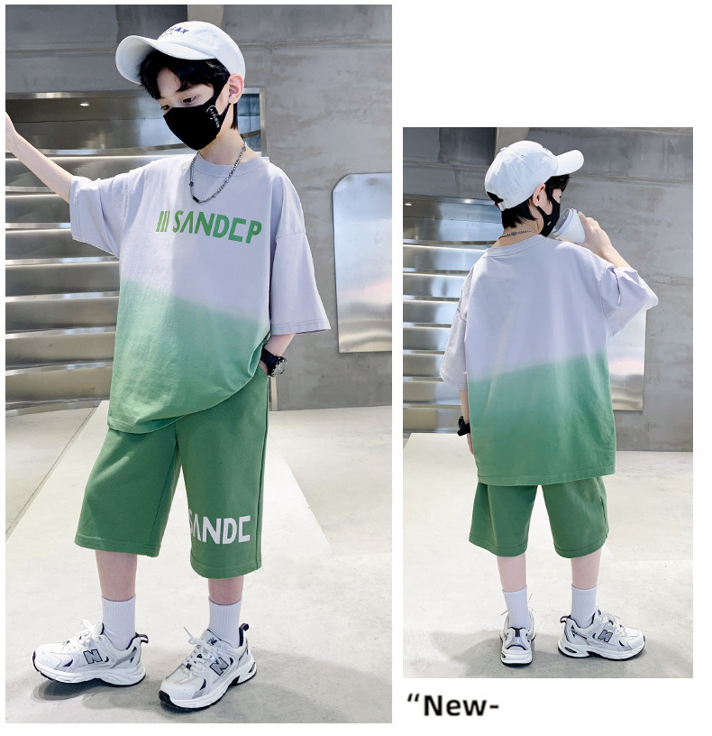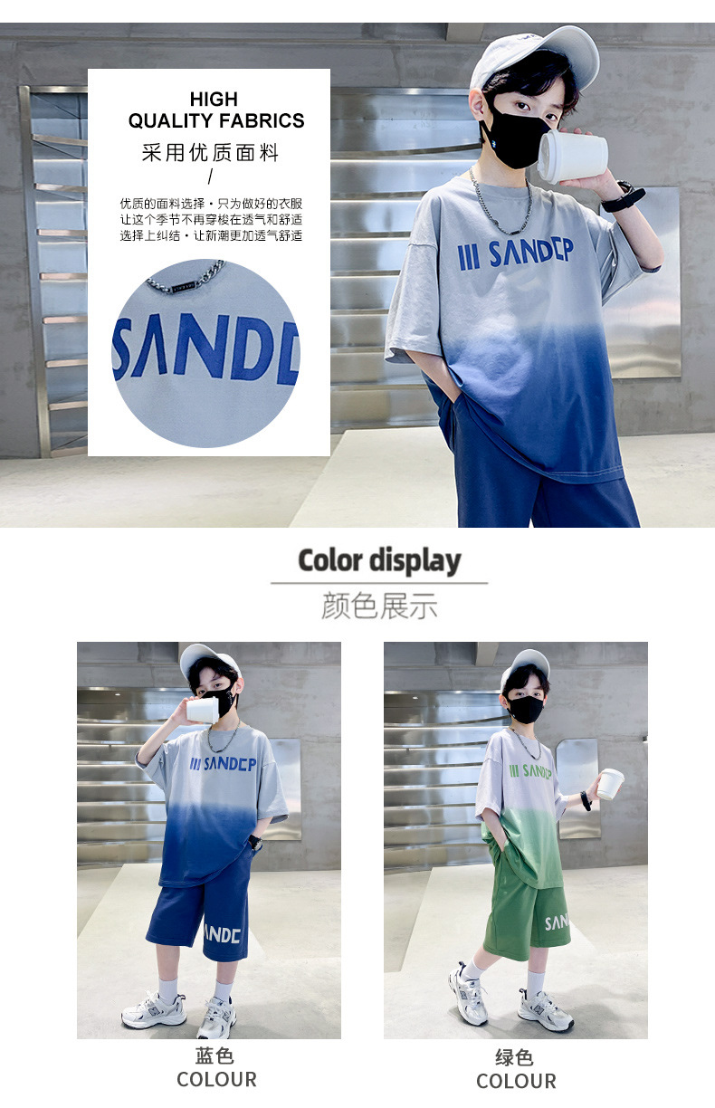 童装夏季纯棉套装吊染时尚潮2023夏季新款中大童男孩短袖短裤潮款