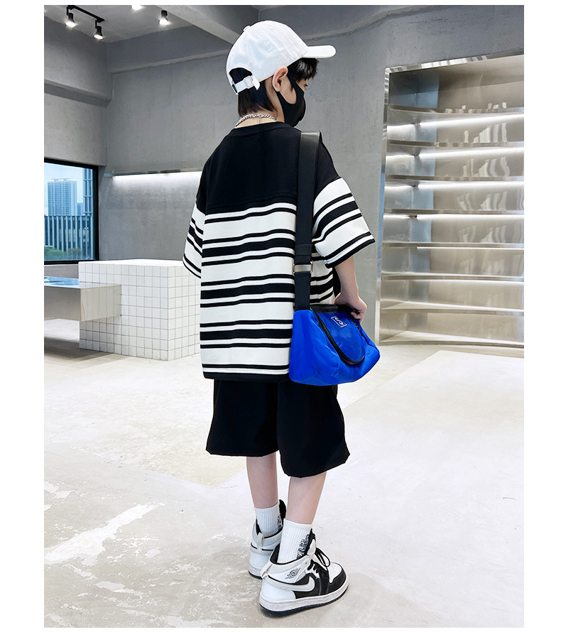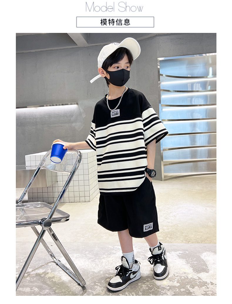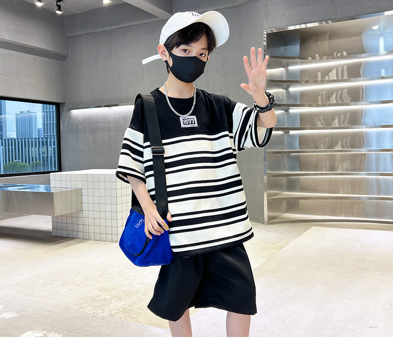 童装夏季纯棉套装条纹T恤2023夏季新款中大童男孩短袖短裤潮款