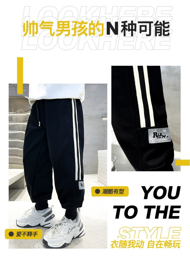 男童春秋款卫裤纯棉2023春季新款中大童男孩长裤儿童裤子炸街潮款