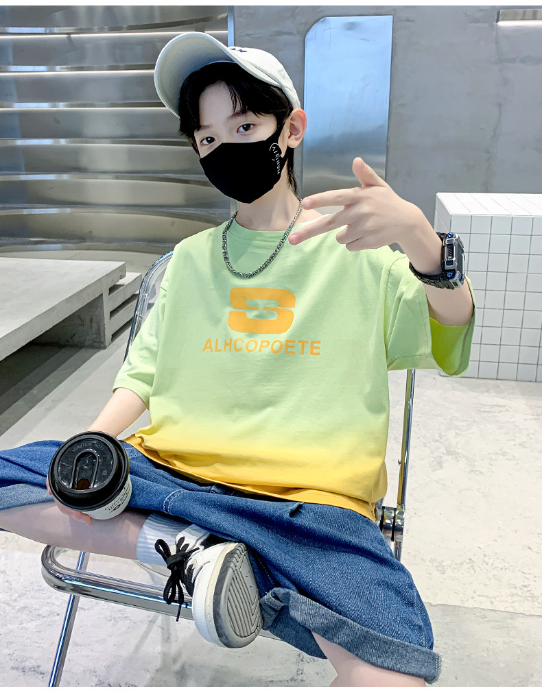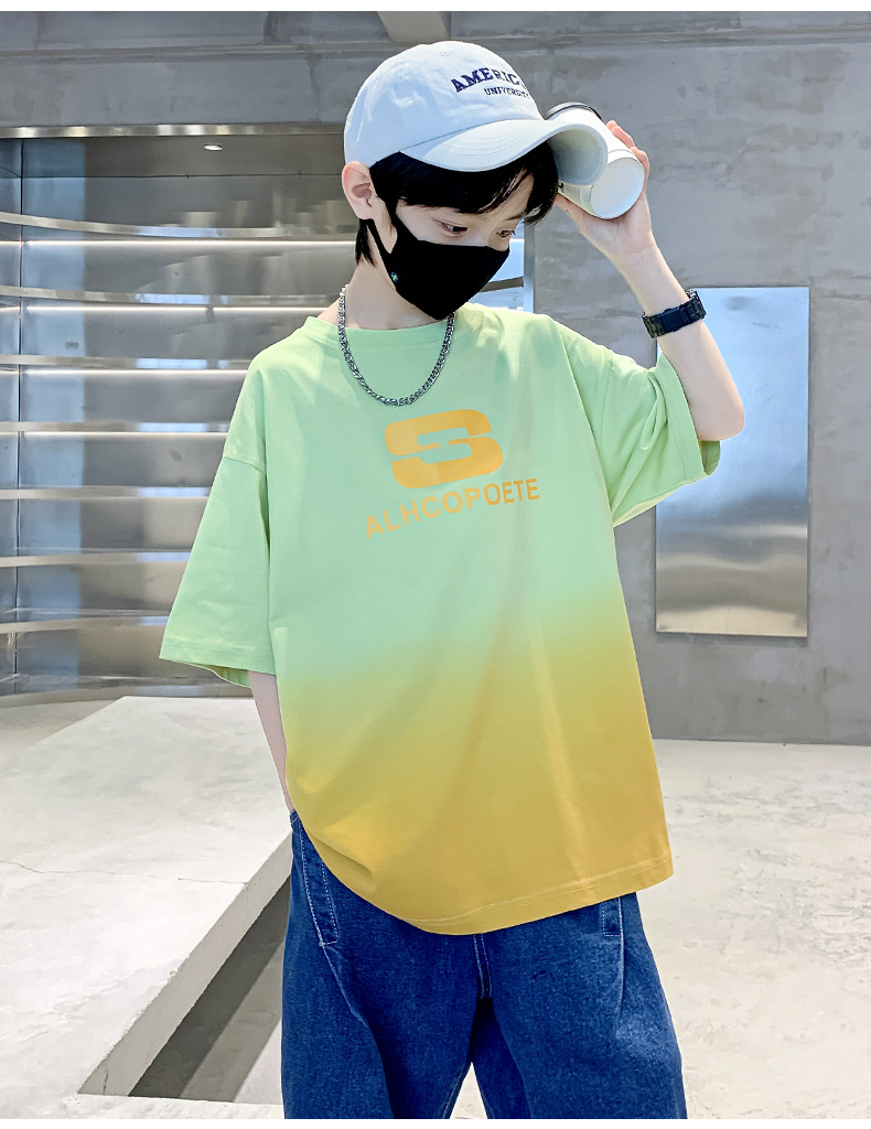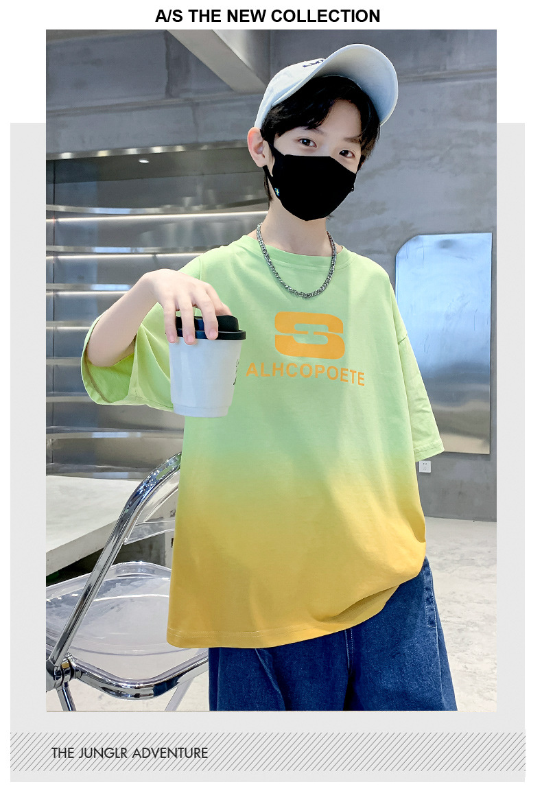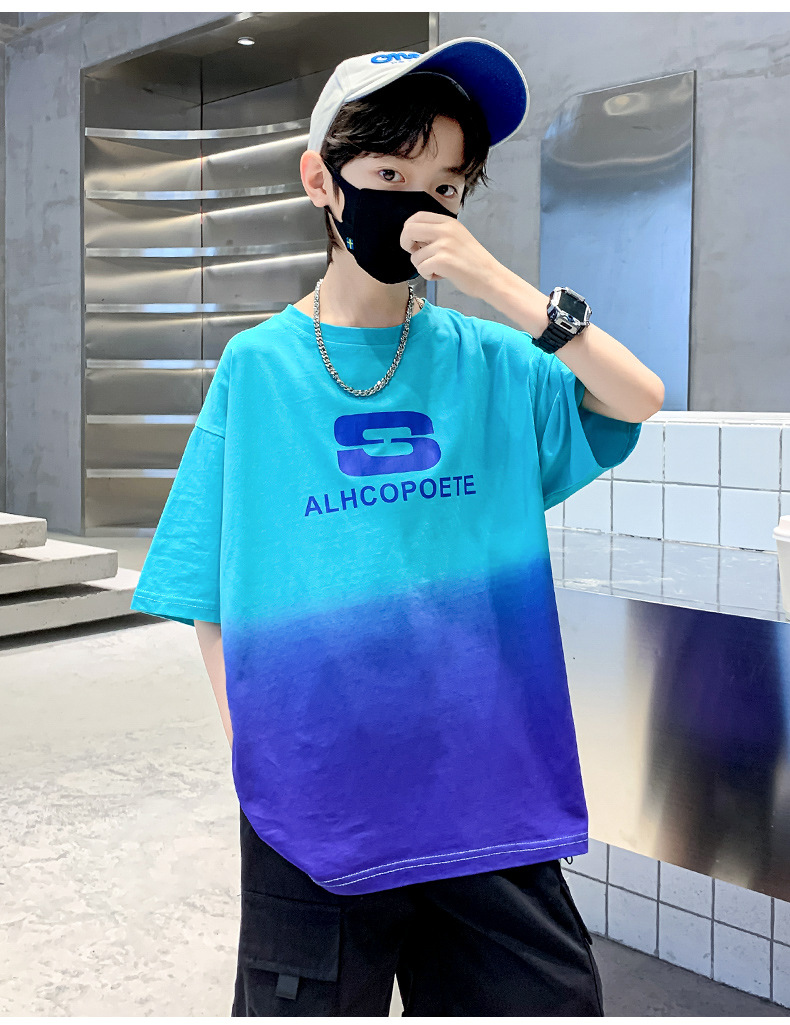 男童短袖T恤透气吸湿纯棉2023夏季新款中大童男孩短袖吊染渐变色
