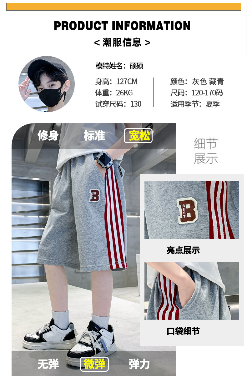 男童短裤夏季纯棉吸湿透气2023夏季新款中大童男孩五分裤条纹潮款