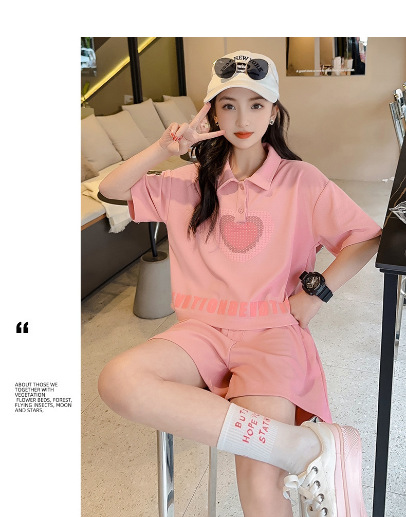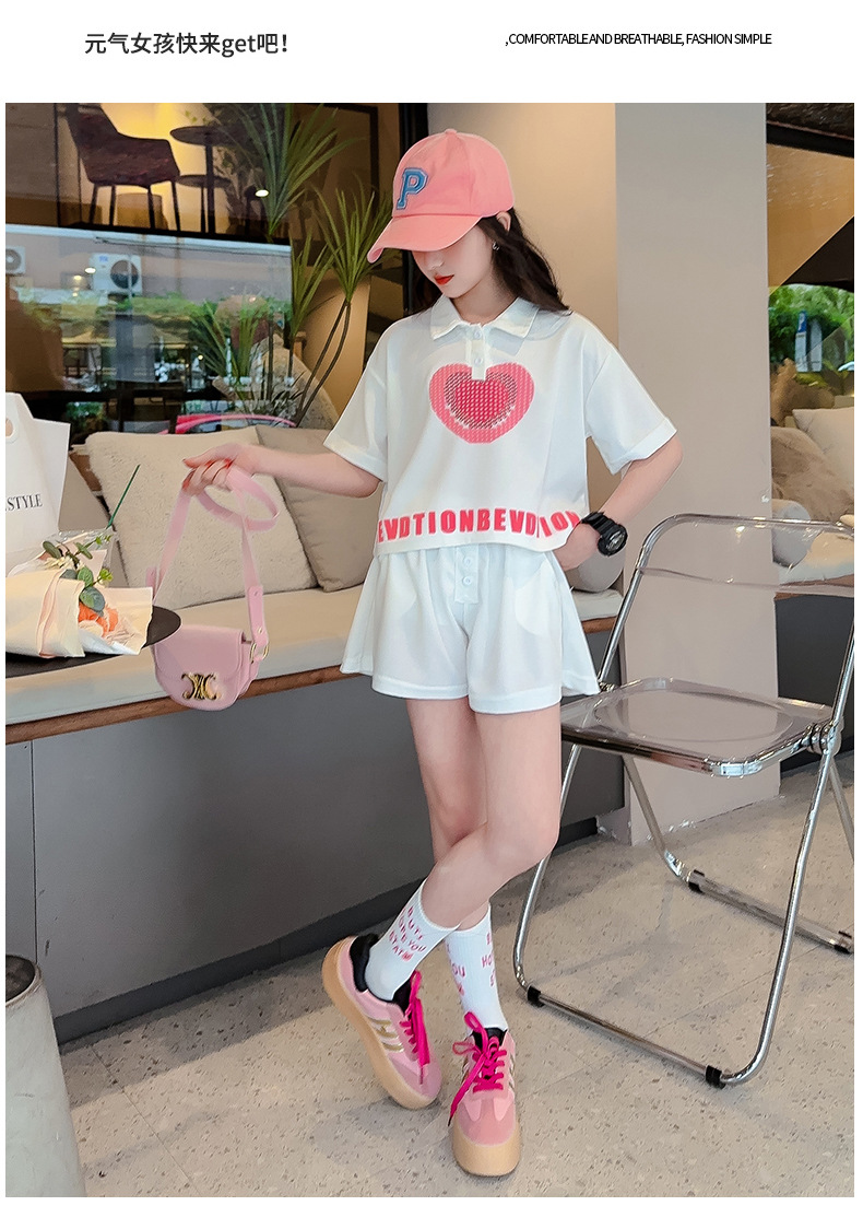 女孩夏季套装透气吸湿2023新款女大童polo衫两件套朱迪棉透气清凉