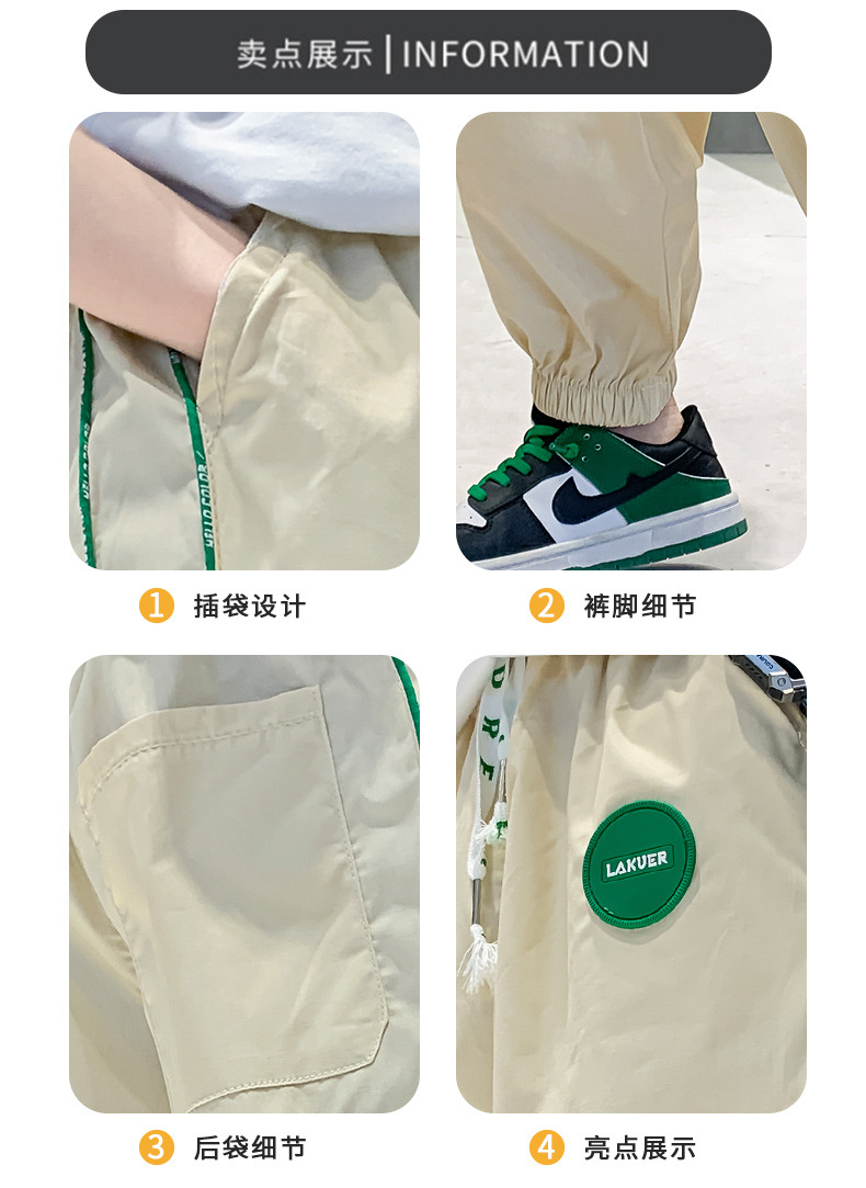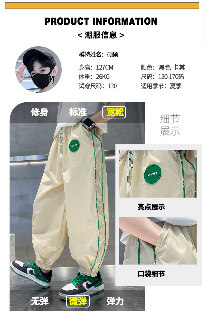 男童夏季裤子清凉薄款2023夏季新款男孩冰丝防蚊裤轻薄透气纯色潮