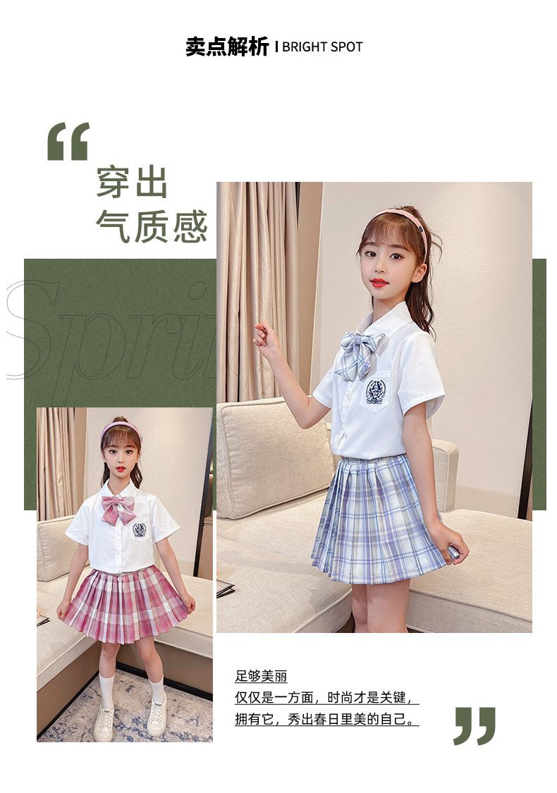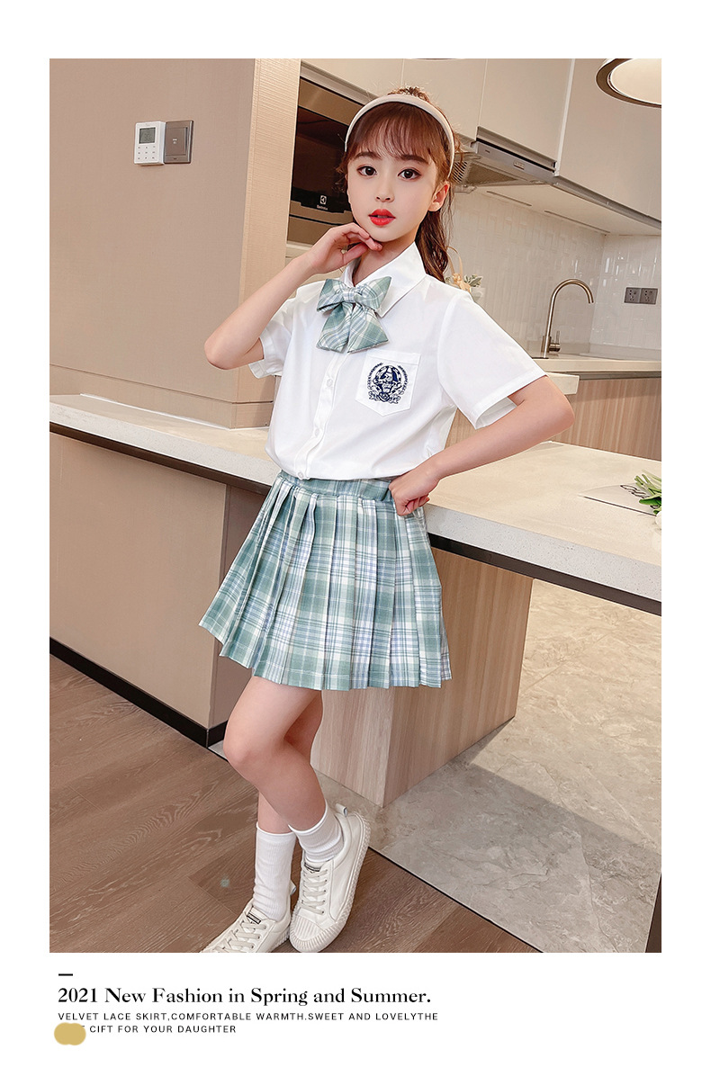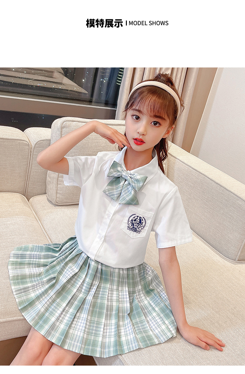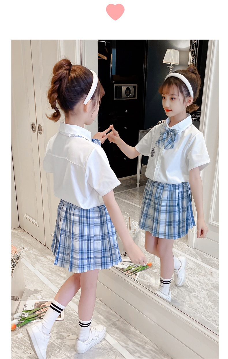 女童夏季表演服三件套2023新款短袖jk裙子套装中大童女孩裤裙套装