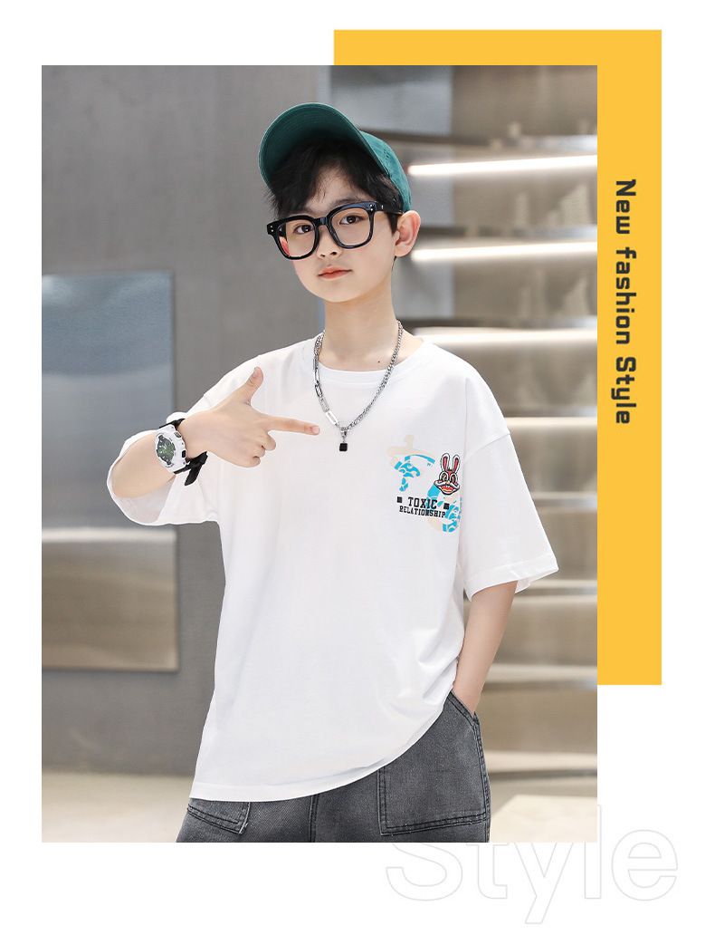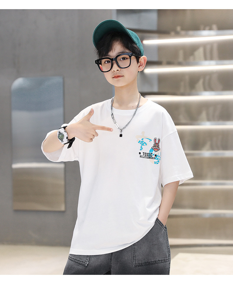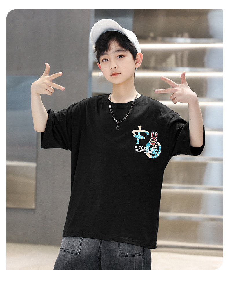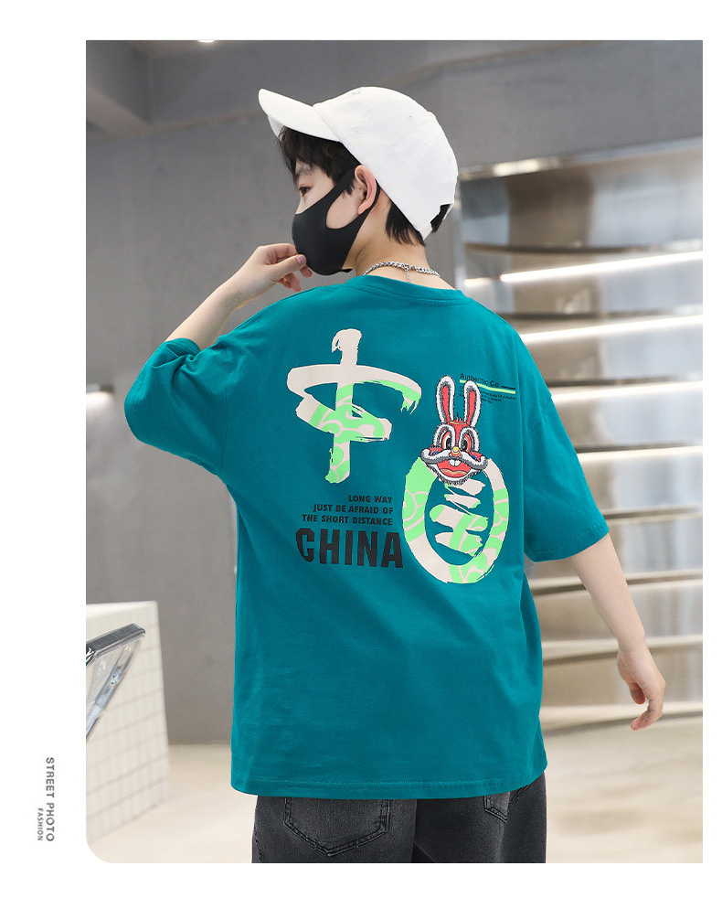 男童短袖透气吸湿纯棉T恤2023夏季新款中大童男孩短袖国潮中国兔